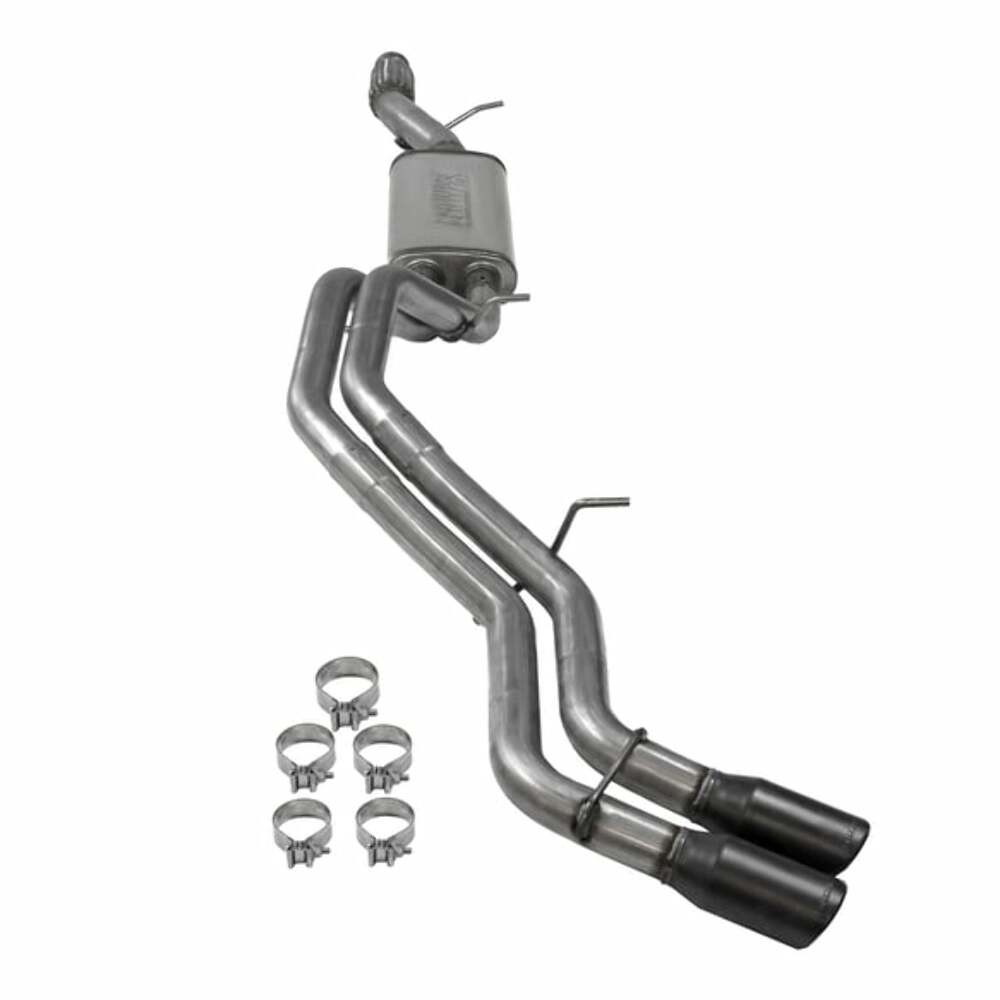 - Dual 3.50-inch black stainless steel tips add a custom look