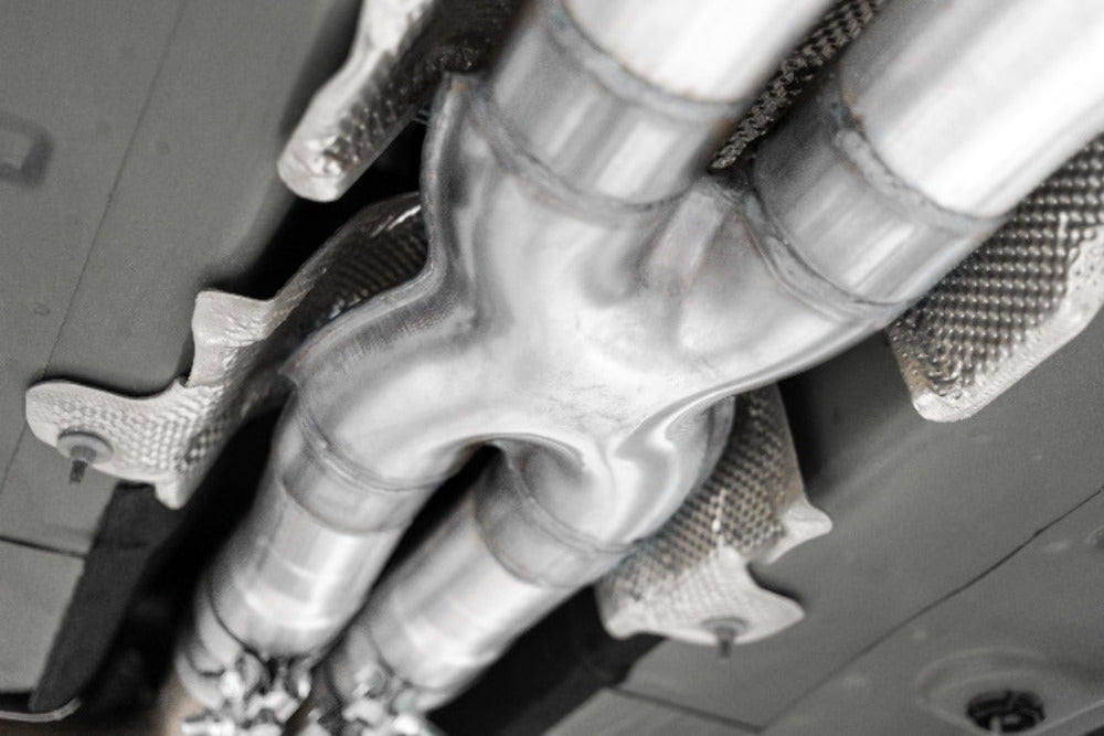 Fits 2016-2023 Dodge Challenger 3in. Cat Back; Dual Rear; Quad Tips - S71133CF