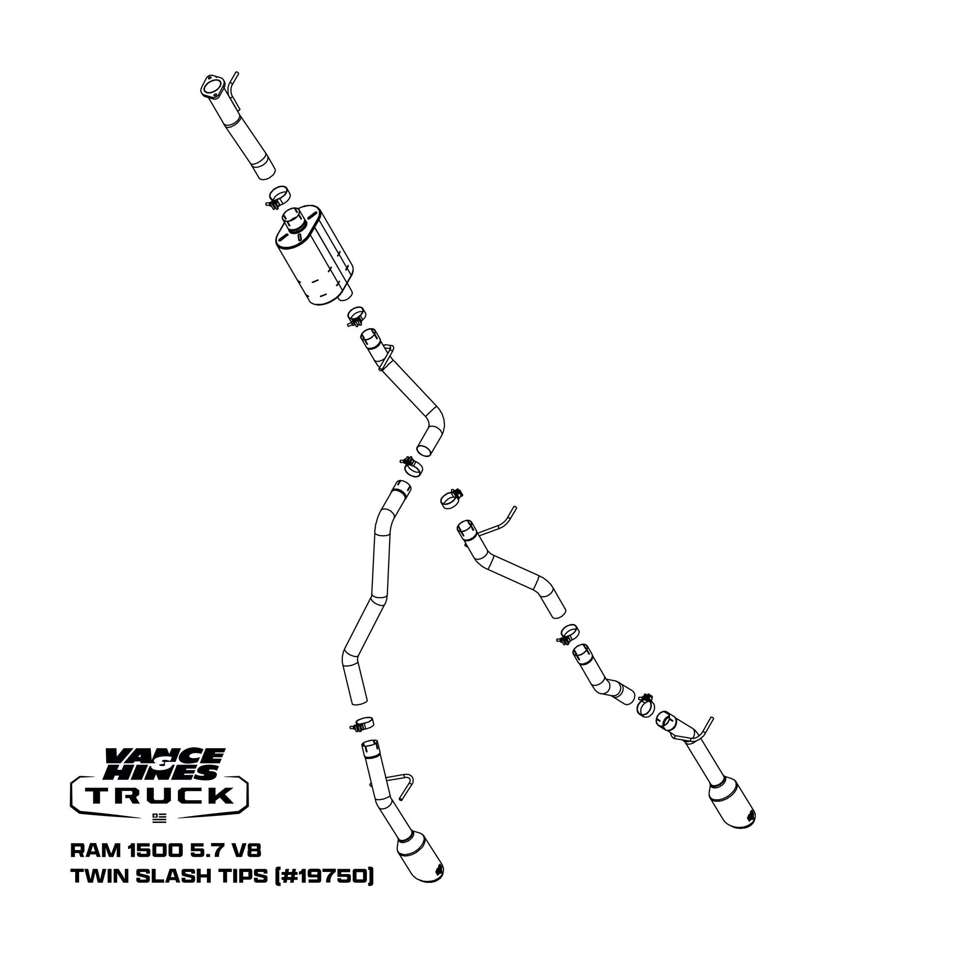 Vance & Hines Holeshot Series Cat Back Performance Exhaust System with Twin Slash Tips for 2019-2024 Ram 1500 5.7 V8 Crew Cab Short Bed Rear Exit Models.