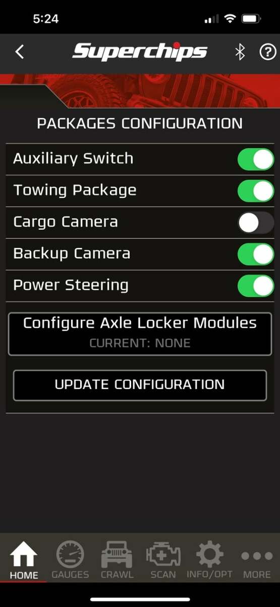 Flashcal+ for Wrangler JL also contains a huge amount of control on the vehicle's subsystems through its body control module (BCM) to enable existing circuits and add or delete features like a backup camera or blind spot detection. It can also disable functions such as your electronic steering pump to convert to hydraulic or the electric lockers to convert to aftermarket manual units when building a trail-ready rig. There are also numerous options for changing your vehicle's lighting settings like Daytime Running Light location, enabling or disabling halo lights, keeping your fog lights on with your DRLs, and much more!
