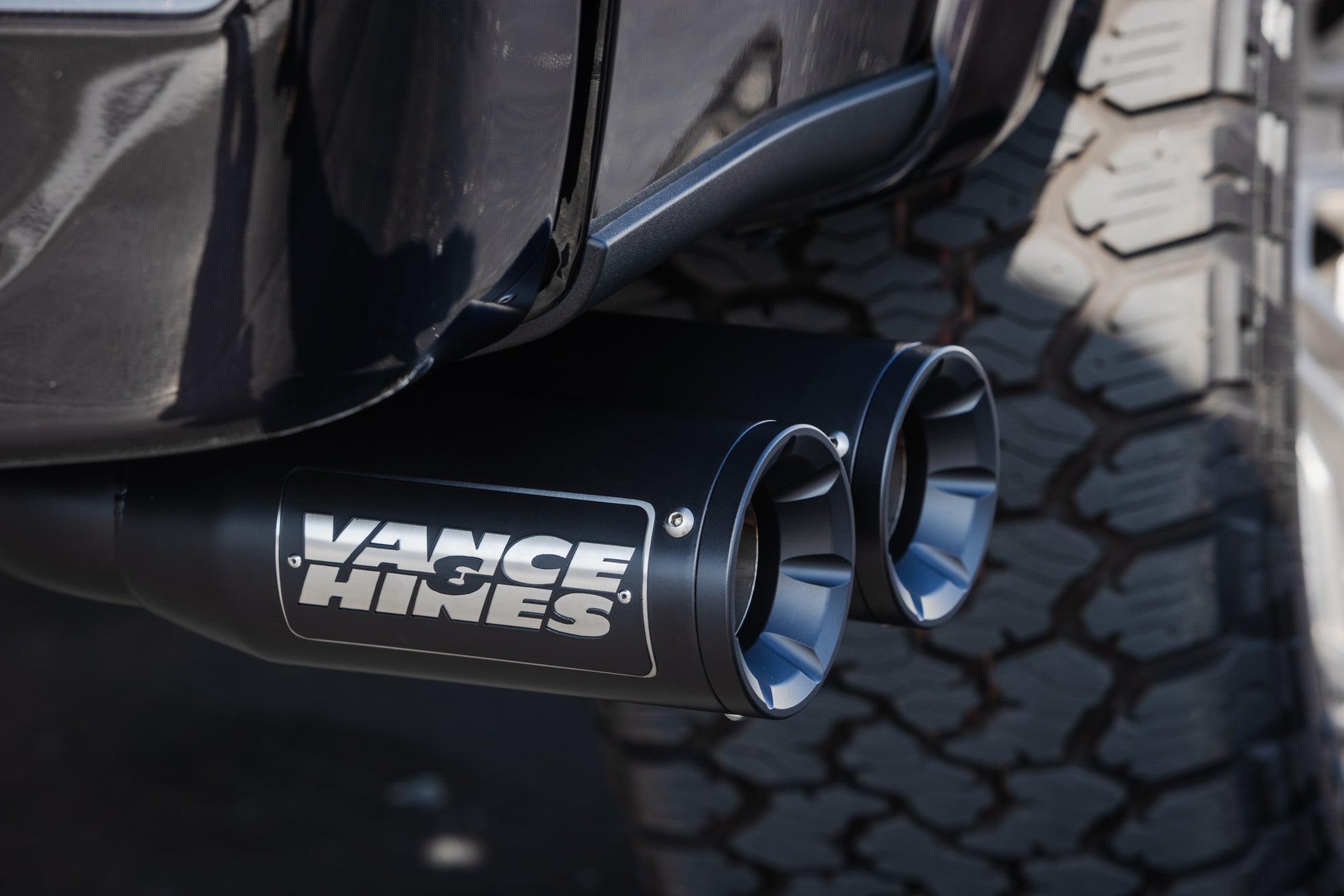 - Side Exit, Dual 4-inch Tips.