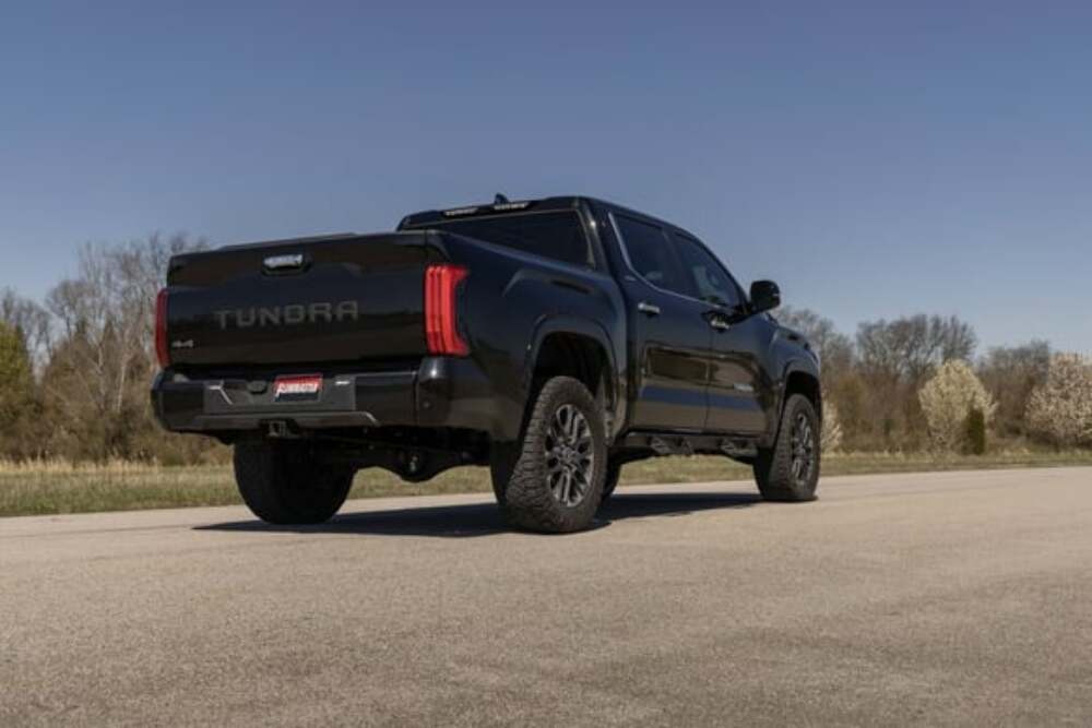 This Flowmaster Flow FX Extreme cat-back exhaust system for the 2022-2024 Toyota Tundra with the 3.4-liter engine is manufactured using durable 409 stainless steel throughout and features 3.0-inch mandrel bent pipes for better exhaust gas flow. A straight through Flow FX series muffler is used for maximum performance and delivers an aggressive to moderate sound inside and out. This system exits under the truck with a dump style turn down tip for added style and better ground clearance when driving off-road. The system uses all the existing factory hanger locations and includes installation instructions and all necessary hardware for an easy installation that you can do at home. Backed by Flowmaster's Lifetime Limited Warranty.