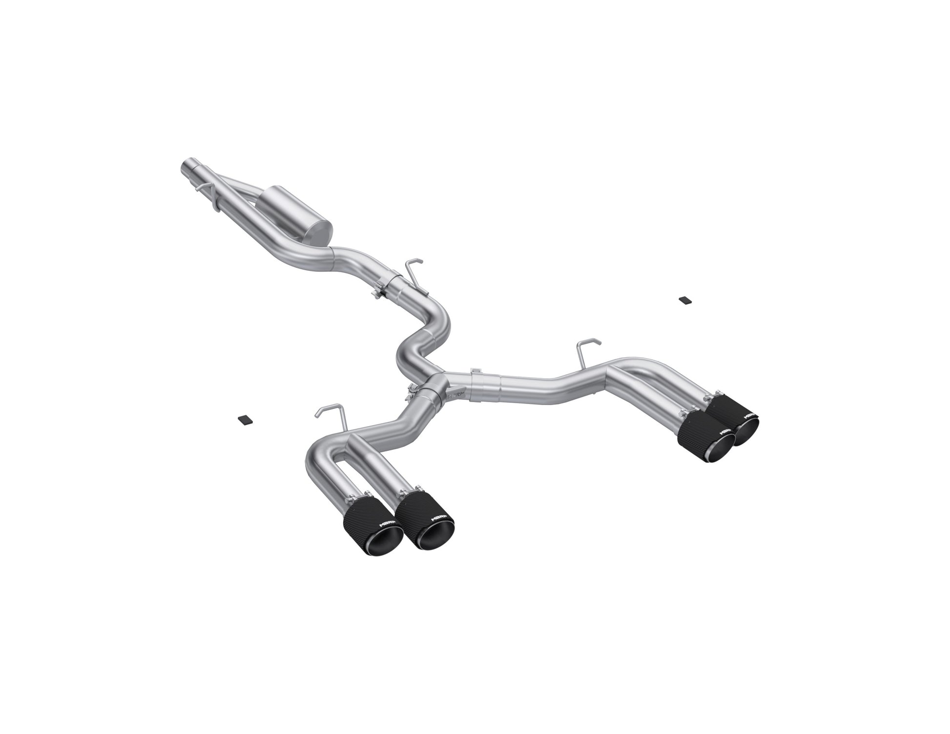 MBRP 3in. Cat-Back Dual Split Quad Rear, T304 Stainless Steel with Carbon Fiber Tips.