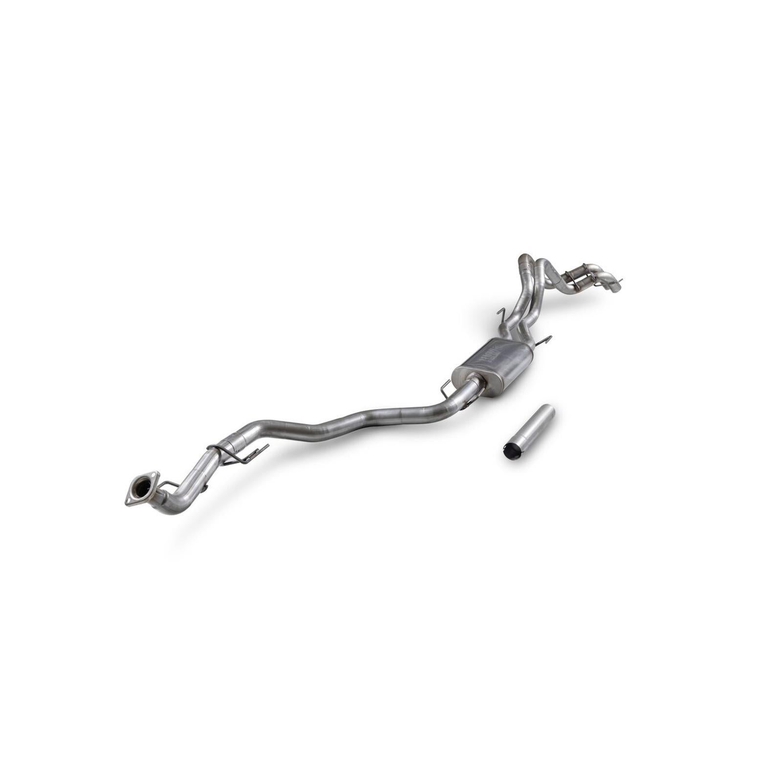 • 3.0-inch and 2.5-inch mandrel bent 16-gauge 409 stainless steel tubing maximizes exhaust flow and improves durability. • High clearance design improves departure angle when off-roading. • Kit includes complete hardware and factory styled hangers in the stock locations for an easy installation. • A Flow FX series muffler delivers a deep, aggressive to moderate performance tone and improves exhaust flow. • Max increases of up to 12 hp and 14 lb-ft over the stock exhaust at the wheels. • Lifetime Limited Warranty. • Tuned performance tones offer quality sound inside and outside of the truck.