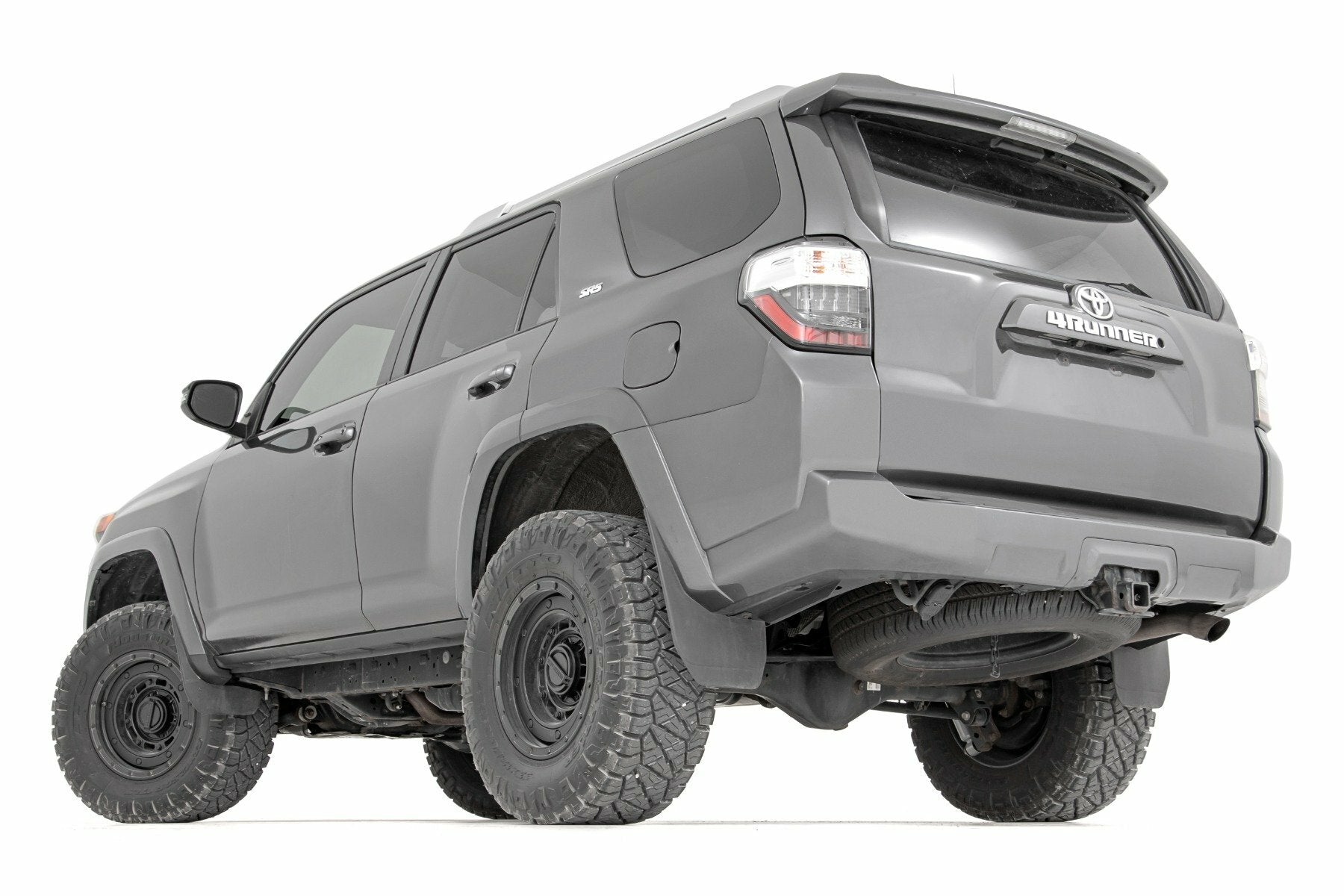 Superior Design. Rough Country's 3-inch Bolt-On Kit offers easy installation and aggressive good looks at an incredible value. Take your 4Runner to new heights with this excellent option for your fifth-generation Toyota 4Runner. Durable Components. This kit features a set of high-quality, lightweight, forged aluminum Upper Control Arms designed to make alignment adjustments easier and durable rubber bushings. These arms are designed to promote a factory-like geometry by keeping the ball joint at optimum angles after lifting. This design allows for an improved, greater range of motion from the ball joint, with less stress, wear and tear. Rough Country's 3-inch Bolt-On Kit features N3 nitrogen-charged shocks, giving your truck incredible ride-quality both on and off-road. Also included are a set of N3 loaded struts and rear coil springs to provide lift height from front to rear. Once installed, this kit gives your truck plenty of ride height for larger tires while offering a clean, level look from front to rear. Installation. Rough Country's bolt-on 3-inch Bolt-On Kit are easy to install, 100% bolt-on, and require no drilling. Plus, they come with all the necessary hardware included. With an estimated install time of 3-4 hours, you can enjoy your new sliders in no time. Limited Lifetime Warranty. Rough Country's 3-inch Bolt-On Kit is backed with a limited lifetime replacement warranty towards manufacturer defects. As such, the product is protected from structural and workmanship damage after the date of purchase. With our industry-leading warranty, give yourself peace of mind when using Rough Country's products!
