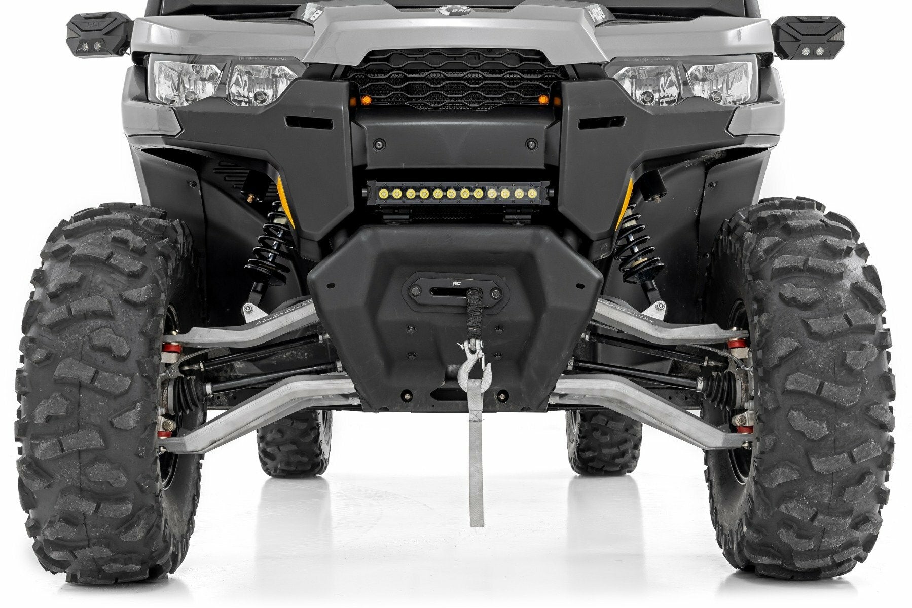 Unlock the full potential of your UTV with Rough Country's Forged Aluminum Control Arms for the Can Am Defender. Stock vehicles are limited to tire height increases due to front tire-to-body contact. Our Forward Offset Control Arms eliminate those limitations and allow for up to a 30Gg tire with no lift required!