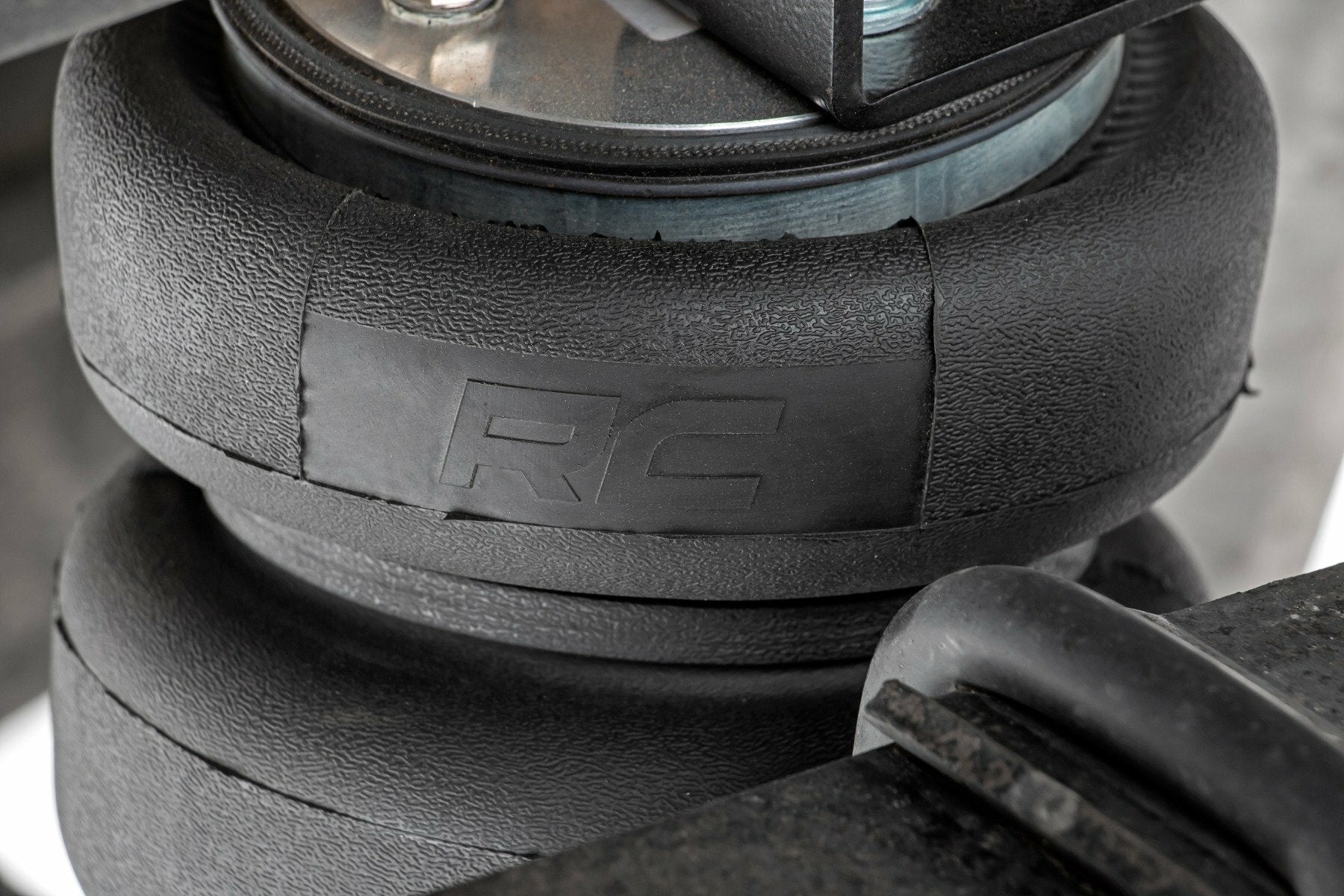 Ideal Leveling. Is your truck your workhorse? The main attraction to the pick-up line is the accessibility to haul and tow as desired. However, due to the amount of weight in the bed, or the condition of the vehicle's rear leaf springs, this can cause the vehicle to be un-level when under load. Here at Rough Country, we created an innovative new product to ensure that these are troubles of the past. Introducing, Rough Country's Rear Air Spring Kit.Heavy-duty Construction. Rough Country's Rear Air Spring Kit features two RC branded high-quality double convoluted airbags complemented with DOT-approved airlines. Whether you plan on towing or hauling in the not-so-distant future Rough Country's Air Spring kit is the must-have accessory to ensure that your trailer is level reducing the weight off of the tongue of your trailer. Each kit offers 1/4" push connector fittings and all of the bracketry needed to ensure installation is lightning fast and secure! Rough Country's Air Spring kit provides up to 5,000 lbs of load support to ensure that you experience less sway and bottoming out when braking and steering!Installation. With an estimated timeframe of 1-2 hours this full kit can be installed at home using standard tools and can be completed efficiently and quickly!Limited Lifetime Replacement Warranty. Rough Country's Rear Air Spring Kit is backed with a limited lifetime replacement warranty towards manufacturer defects. As such, the product is protected from structural and workmanship damage after the date of purchase. With our industry-leading warranty give yourself peace of mind when using Rough Country's Suspension products!