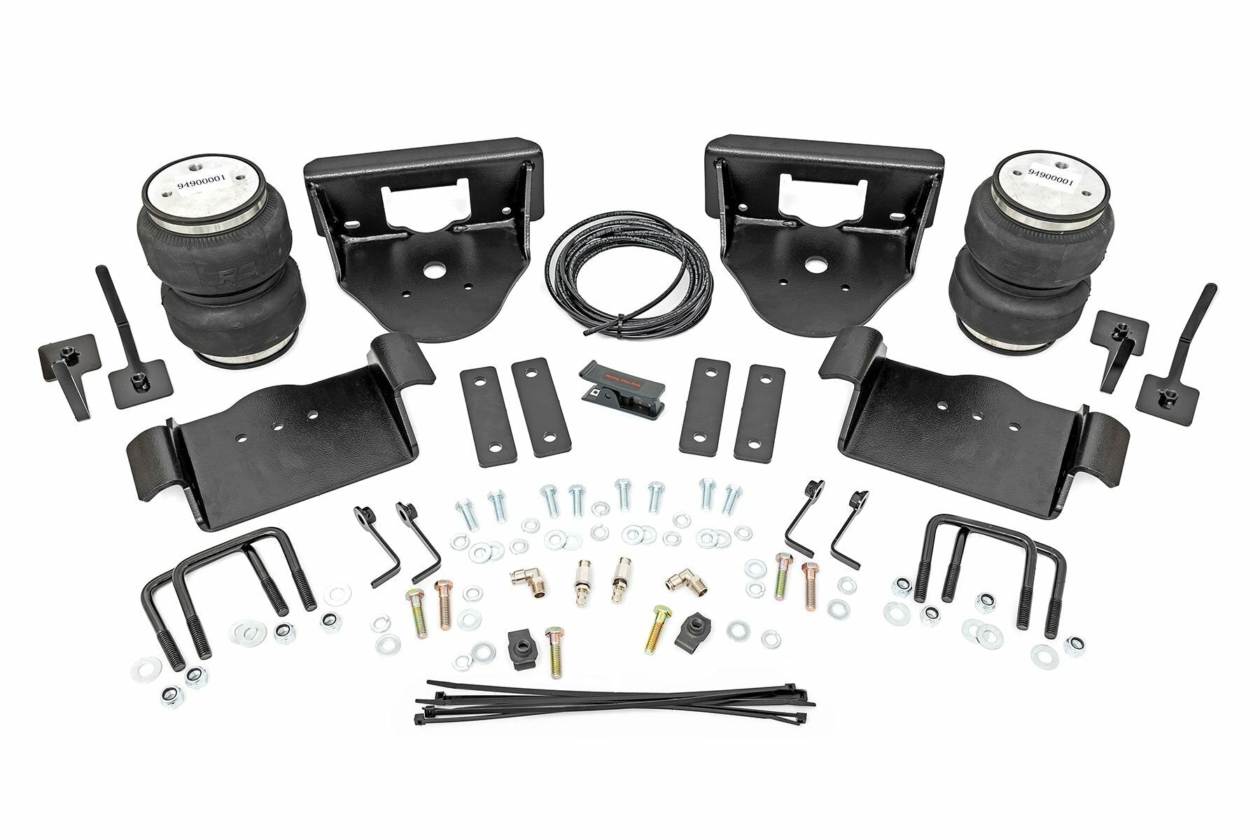 Ideal Leveling. Is your truck your workhorse? The main attraction to the pick-up line is the accessibility to haul and tow as desired. However, due to the amount of weight in the bed, or the condition of the vehicle's rear leaf springs, this can cause the vehicle to be un-level when under load. Here at Rough Country, we created an innovative new product to ensure that these are troubles of the past. Introducing, Rough Country's Rear Air Spring Kit.Heavy-duty Construction. Rough Country's Rear Air Spring Kit features two RC branded high-quality double convoluted airbags complemented with DOT-approved airlines. Whether you plan on towing or hauling in the not-so-distant future Rough Country's Air Spring kit is the must-have accessory to ensure that your trailer is level reducing the weight off of the tongue of your trailer. Each kit offers 1/4" push connector fittings and all of the bracketry needed to ensure installation is lightning fast and secure! Rough Country's Air Spring kit provides up to 5,000 lbs of load support to ensure that you experience less sway and bottoming out when braking and steering!Installation. With an estimated timeframe of 1-2 hours this full kit can be installed at home using standard tools and can be completed efficiently and quickly!Limited Lifetime Replacement Warranty. Rough Country's Rear Air Spring Kit is backed with a limited lifetime replacement warranty towards manufacturer defects. As such, the product is protected from structural and workmanship damage after the date of purchase. With our industry-leading warranty give yourself peace of mind when using Rough Country's Suspension products!