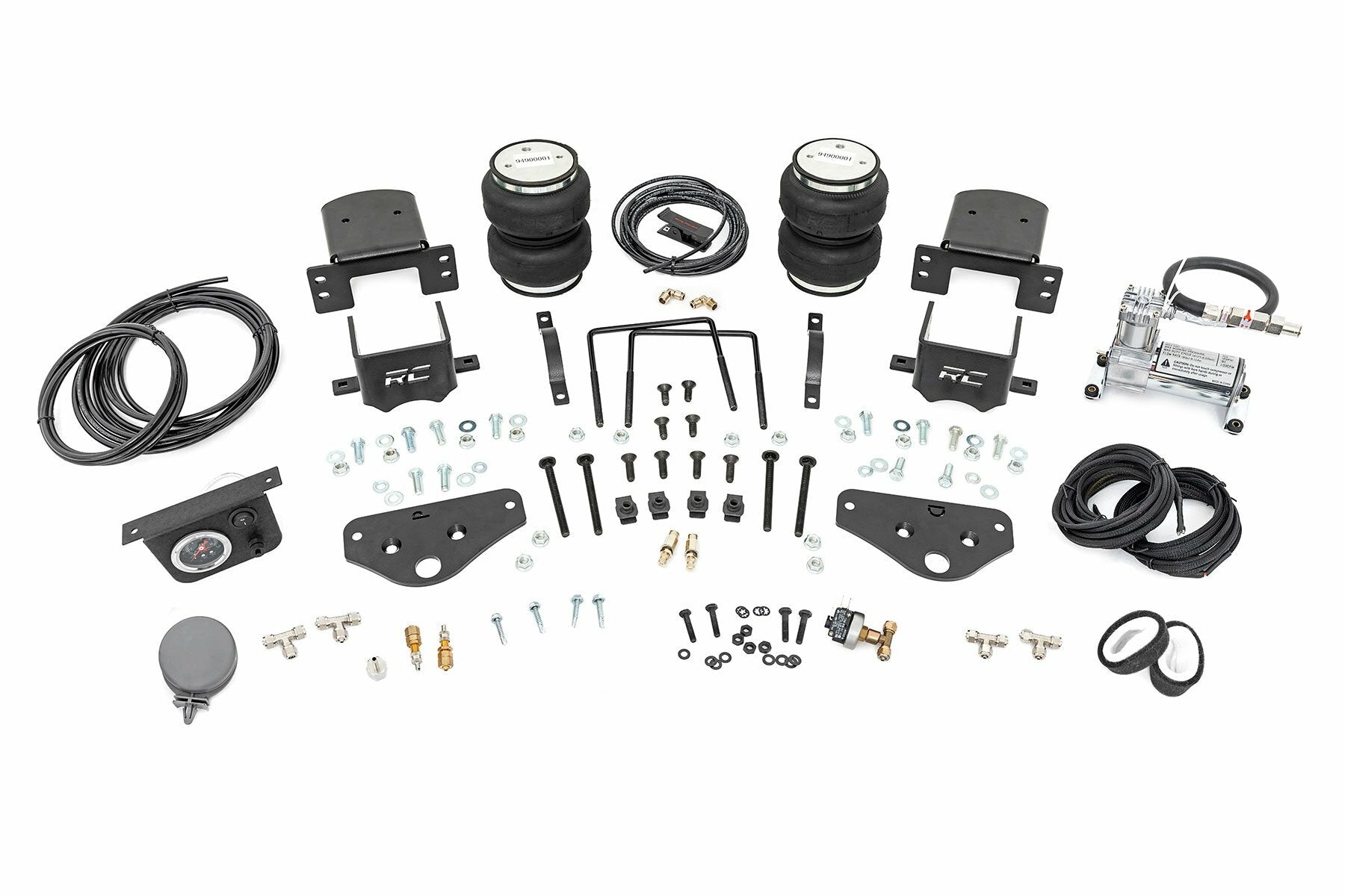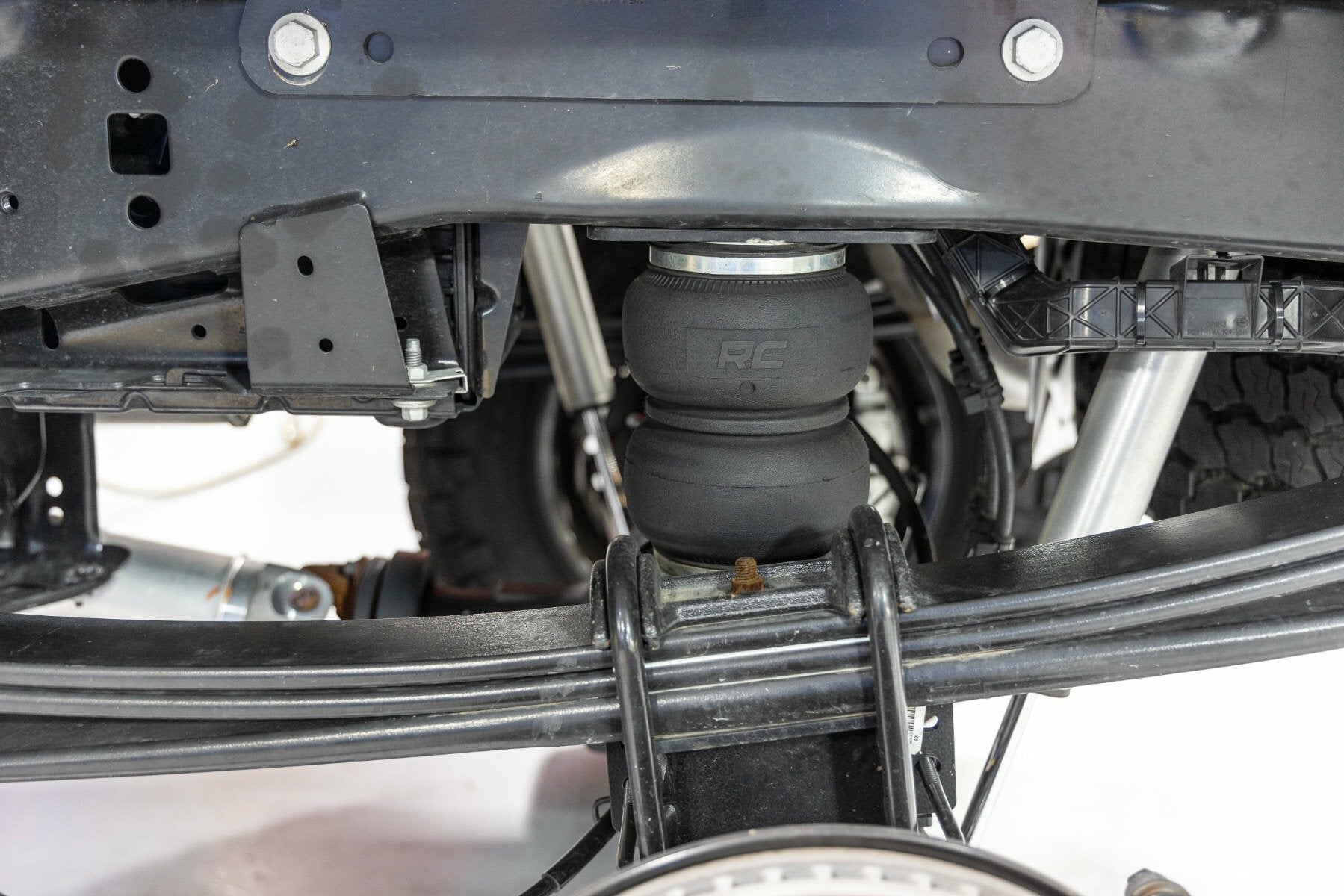 Ideal Leveling. Is your truck your workhorse? The main attraction to the pick-up line is the accessibility to haul and tow as desired. However, due to the amount of weight in the bed, or the condition of the vehicle's rear leaf springs, this can cause the vehicle to be un-level when under load. Here at Rough Country, we created an innovative new product to ensure that these are troubles of the past. Introducing, Rough Country's Rear Air Spring Kit.Heavy-duty Construction. Rough Country's Rear Air Spring Kit features two RC branded high-quality double convoluted airbags complemented with DOT-approved airlines. Whether you plan on towing or hauling in the not-so-distant future Rough Country's Air Spring kit is the must-have accessory to ensure that your trailer is level reducing the weight off of the tongue of your trailer. Each kit offers 1/4" push connector fittings and all of the bracketry needed to ensure installation is lightning fast and secure! Rough Country's Air Spring kit provides up to 5,000 lbs of load support to ensure that you experience less sway and bottoming out when braking and steering! Installation. With an estimated timeframe of 1-2 hours this full kit can be installed at home using standard tools and can be completed efficiently and quickly! Limited Lifetime Replacement Warranty. Rough Country's Rear Air Spring Kit is backed with a limited lifetime replacement warranty towards manufacturer defects. As such, the product is protected from structural and workmanship damage after the date of purchase. With our industry-leading warranty give yourself peace of mind when using Rough Country's Suspension products!