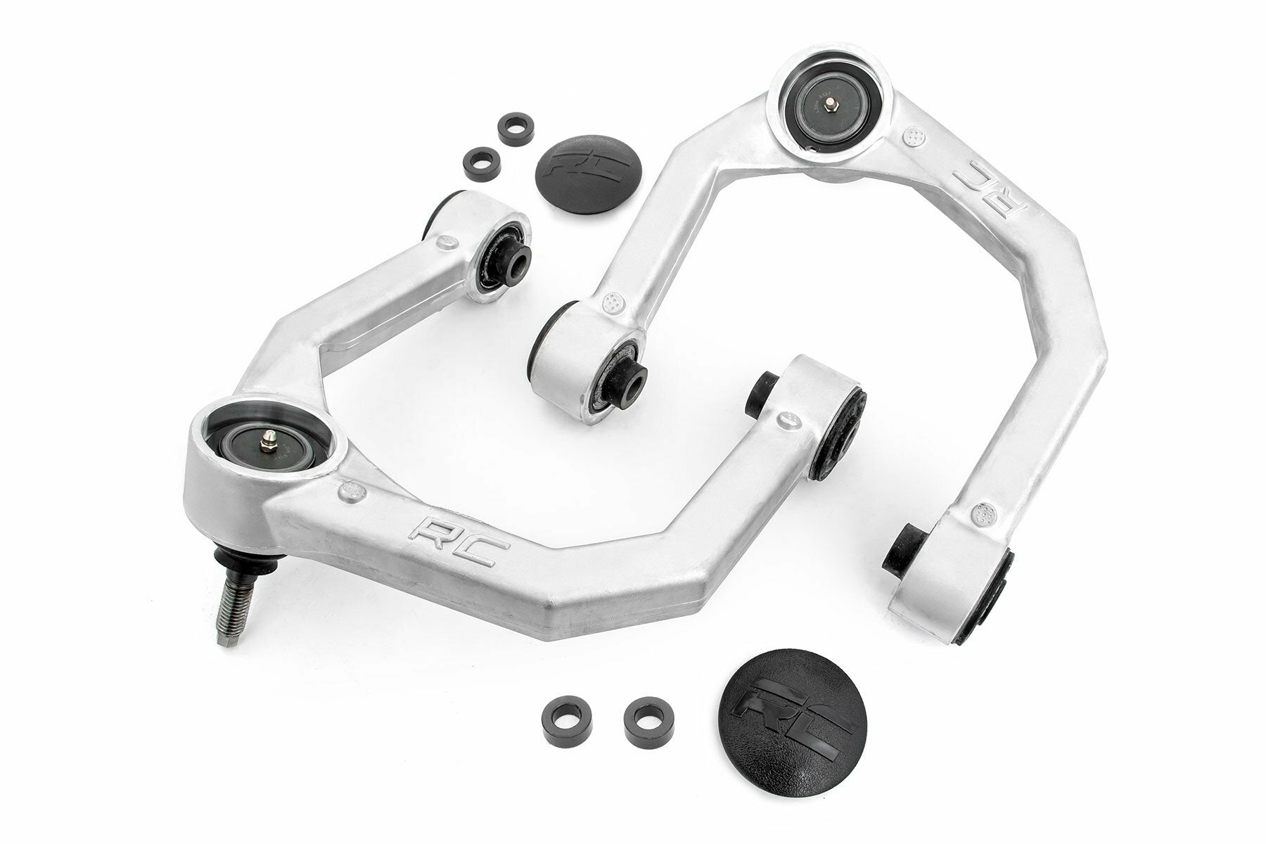 These high-quality, Forged Aluminum Upper Control Arms are designed to make alignment adjustments easier and durable rubber bushings offer enhanced durability. These arms are designed to promote a factory-like geometry by keeping the ball joint at optimum angles after lifting. This design allows for an improved, greater range of motion from the ball-joint, with less stress, wear and tear.