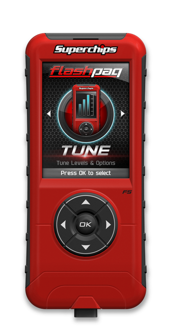 The much-anticipated Flashpaq tuner for 2019-2022 Silverado and Sierra is finally here, with revolutionary in-cab ECM/TCM Unlock! Available for 5.3L and 6.2L applications, Flashpaq tuning offers more horsepower and can unlock/flash right from your driveway. The all-new GM Flashpaq performance programmer (PN 2849-F) comes pre-loaded with tunes developed specifically for daily driving, towing, and performance enthusiasts. Our Mileage XS, Tow, 87 Octane, 91 Octane, and 93 Octane tunes offer incredible torque gains throughout the RPM range with the improved drivability you've come to expect from Superchips.