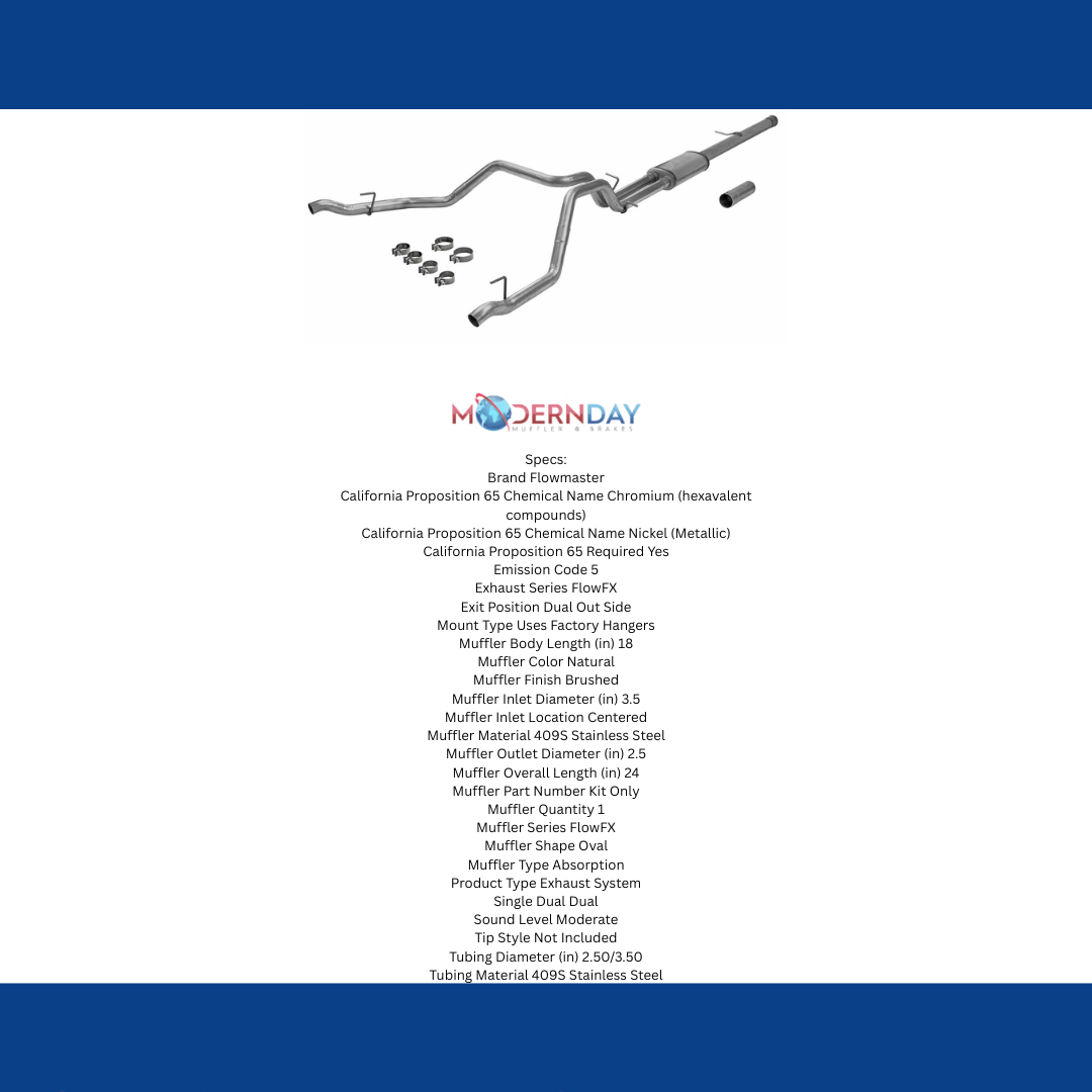 - FlowFX straight through performance muffler delivers a deep, moderate performance tone and improves exhaust flow