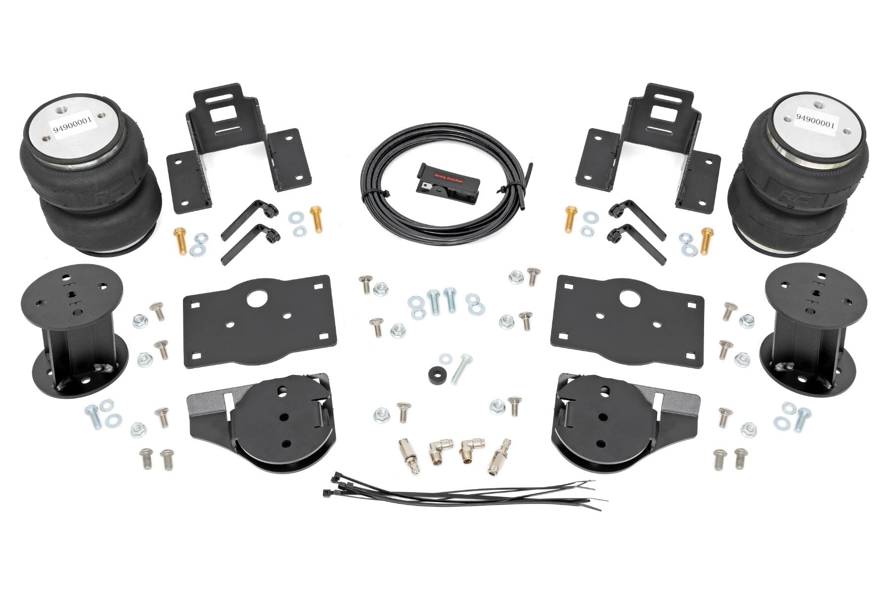 Ideal Leveling. Is your truck your workhorse? The main attraction to the pick-up line is the accessibility to haul and tow as desired. However, due to the amount of weight in the bed, or the condition of the vehicle's rear leaf springs, this can cause the vehicle to be un-level when under load. Here at Rough Country, we created an innovative new product to ensure that these are troubles of the past. Introducing, Rough Country's Rear Air Spring Kit. Heavy-duty Construction. Rough Country's Rear Air Spring Kit features two RC branded high-quality double convoluted airbags complemented with DOT-approved airlines. Whether you plan on towing or hauling in the not-so-distant future Rough Country's Air Spring kit is the must-have accessory to ensure that your trailer is level reducing the weight off of the tongue of your trailer. Each kit offers 1/4" push connector fittings and all of the bracketry needed to ensure installation is lightning fast and secure! Rough Country's Air Spring kit provides up to 5,000 lbs. of load support to ensure that you experience less sway and bottoming out when braking and steering! Installation. With an estimated timeframe of 1-2 hours this full kit can be installed at home using standard tools and can be completed efficiently and quickly! Limited Lifetime Replacement Warranty. Rough Country's Rear Air Spring Kit is backed with a limited-lifetime replacement warranty towards manufacturer defects. As such, the product is protected from structural and workmanship damage after the date of purchase. With our industry-leading warranty give yourself peace of mind when using Rough Country's Suspension products!