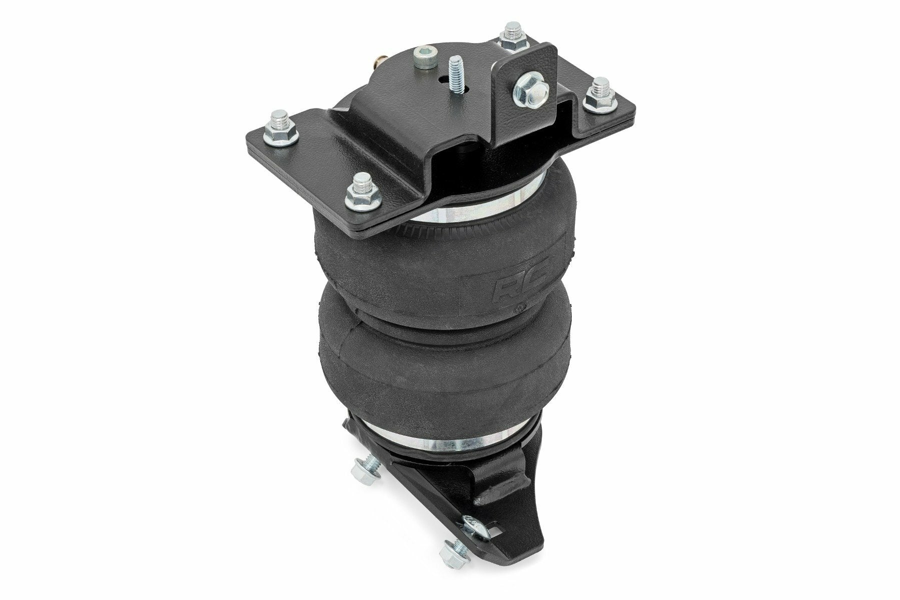 Ideal Leveling. Is your truck your workhorse? The main attraction to the pick-up line is the accessibility to haul and tow as desired. However, due to the amount of weight in the bed, or the condition of the vehicle's rear leaf springs, this can cause the vehicle to be un-level when under load. Here at Rough Country, we created an innovative new product to ensure that these are troubles of the past. Introducing, Rough Country's Rear Air Spring Kit. Heavy-duty Construction. Rough Country's Rear Air Spring Kit features two RC branded high-quality double convoluted airbags complemented with DOT-approved airlines. Whether you plan on towing or hauling in the not-so-distant future Rough Country's Air Spring kit is the must-have accessory to ensure that your trailer is level reducing the weight off of the tongue of your trailer. Each kit offers 1/4" push connector fittings and all of the bracketry needed to ensure installation is lightning fast and secure! Rough Country's Air Spring kit provides up to 5,000 lbs. of load support to ensure that you experience less sway and bottoming out when braking and steering!