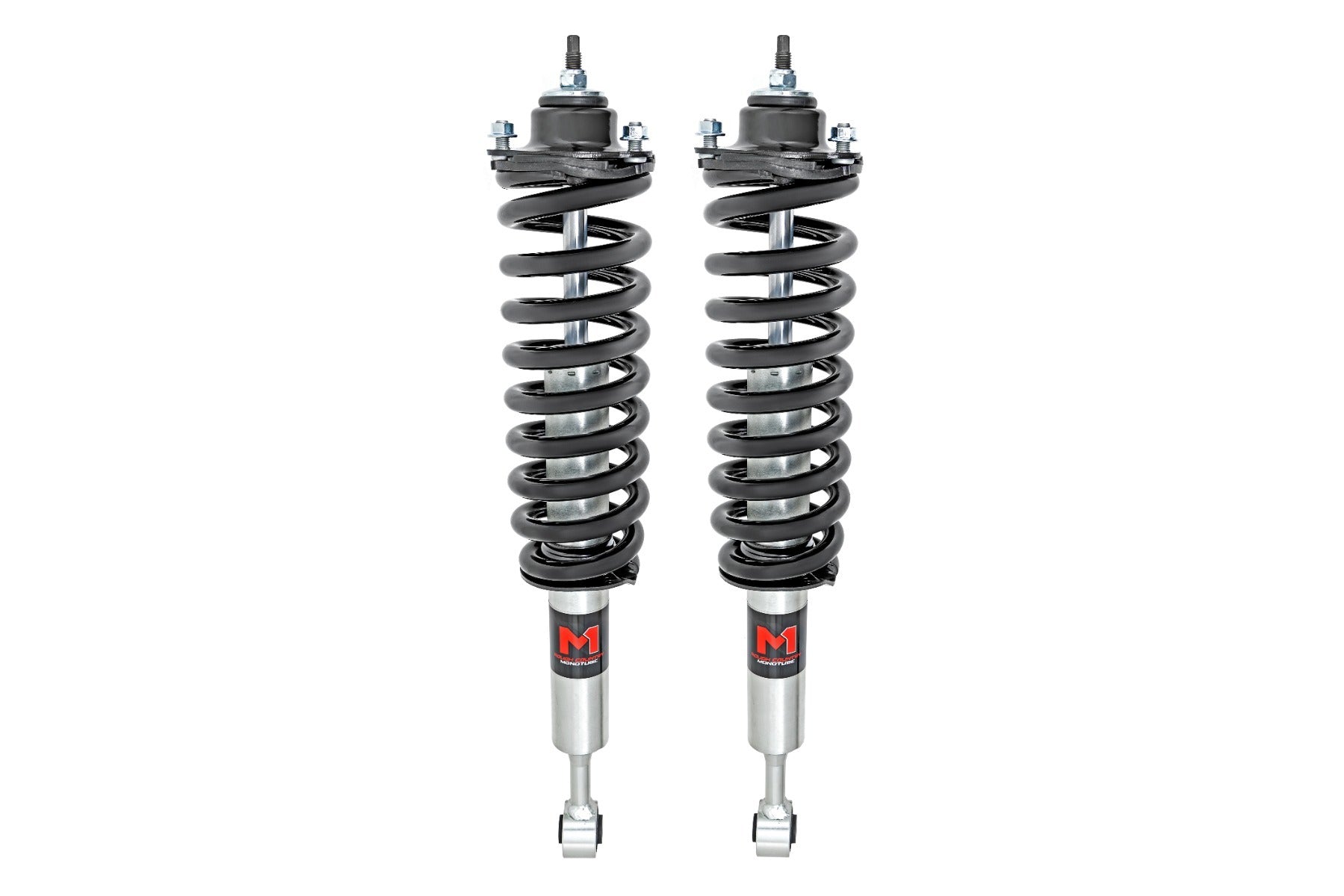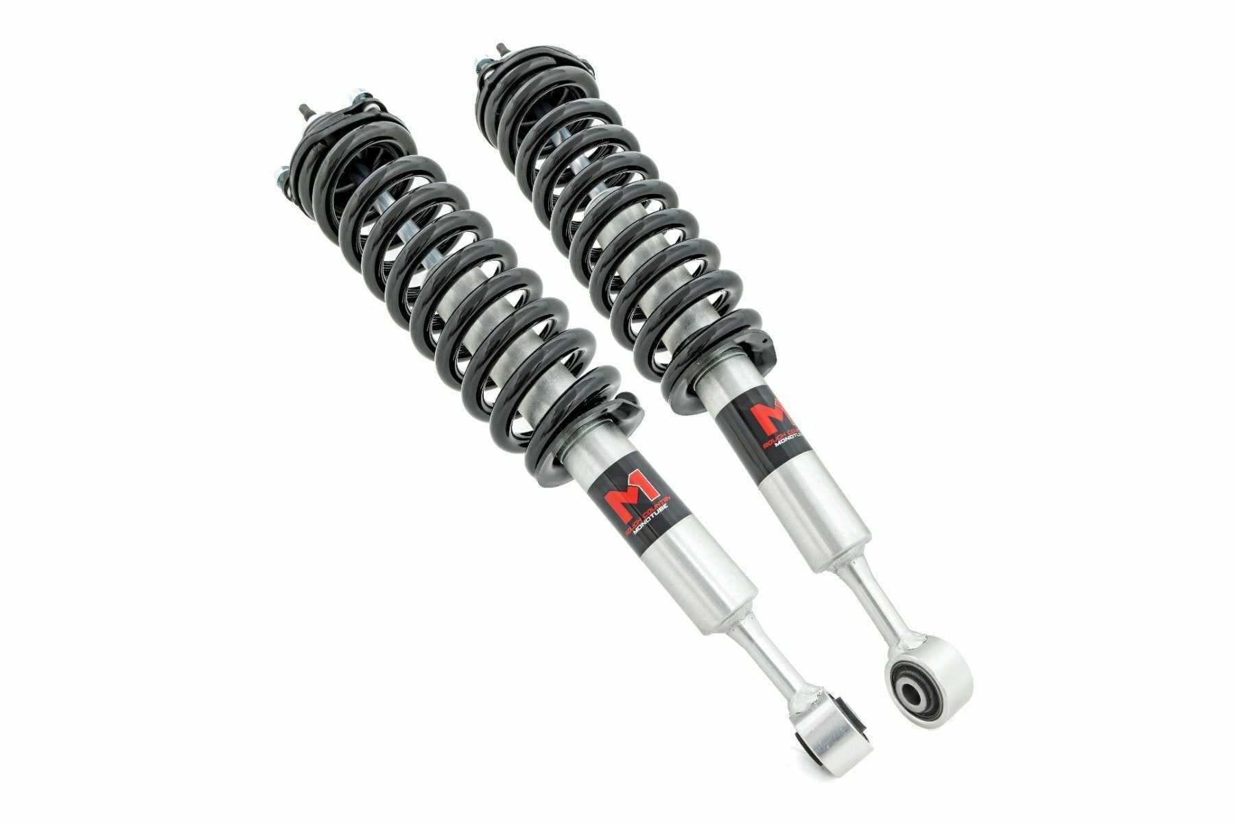 Improved Stance, Balance, and Handling. If you want to improve your vehicle's on-road performance and off-road capabilities, Rough Country's M1 Loaded Strut Kits are the way to go. Our M1 Loaded Struts help stabilize your vehicle's movements, enhancing control when you turn, brake, accelerate or ride over uneven road surfaces. As an adjustable ride height strut, these M1's keep your suspension from overextending, providing a more consistent ride. Made for rugged off-road performance, our M1 monotube struts have a 46mm digressive piston for a more stable ride, preserving the smooth ride quality you need.Quality Construction. Rough Country's M1 Loaded Struts have been engineered to give you the most reliable performance, increased driving comfort, and all-around performance for your vehicle. Made from 2" seamless extruded tubing and feature durable vulcanized natural rubber bushings. They're also zinc plated for resistance against the elements. Plus, they're adjustable in height. Utilizing multiple grooves in the strut body the spring perch can be raised or lowered. So whether you're looking to add a little extra clearance for off-roading or just want your ride to sit a little higher, our M1 Monotube Loaded Struts are the perfect solution.Installation and Warranty. This bolt-on installation requires just basic tools and about 2-3 hours to complete. Our Strut Kit is backed with a limited lifetime replacement warranty towards manufacturer defects. As such, the product is protected from structural and workmanship damage after the date of purchase. With our industry-leading warranty, give yourself peace of mind when using Rough Country's products!