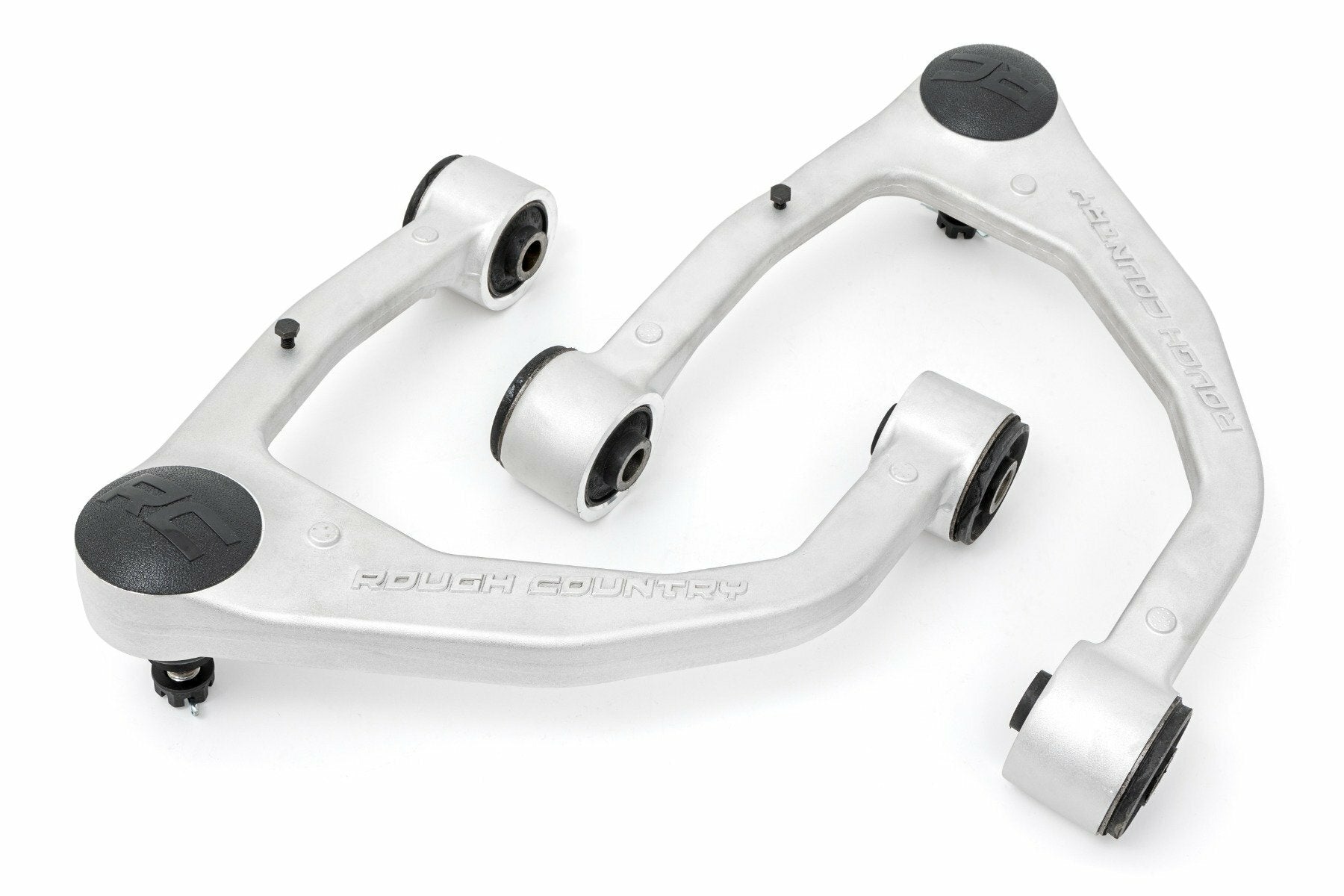 Durable One-Piece Design. Take your truck to the next level with Rough Country's most durable Upper Control Arm to date! Rough Country's Forged Upper Control Arms feature a solid, 1-piece design made of forged aluminum for superior strength and durability. This forged design outperforms all other types of arm construction, with no welding weak spots that could bend or break. High Strength Ball Joints. Rough Country's Forged Upper Control Arms use POM ball joints which reduces metal-to-metal contact for less maintenance and longer service life versus standard or OE replacements. These Ball joints feature a POM ball race for an extremely low co-efficient of friction and an oversize ball diameter reduces load and improves range of motion in a fully greaseable design. Rough Country's Forged Upper Control Arms also feature durable rubber bushings rubber bushings for superior quality and durability. Installation. Featuring a 100% bolt-on installation process, an estimated timeframe of 3-4 hours is recommended to complete this full installation. This full kit can be installed at home and can be completed efficiently and quickly! Limited Lifetime Replacement Warranty. Rough Country's Forged Aluminum Control Arms are backed with a limited lifetime replacement warranty towards manufacturer defects. As such, the product is protected from structural and workmanship damage after the date of purchase. With our industry-leading warranty give yourself peace of mind when using Rough Country's Suspension products!