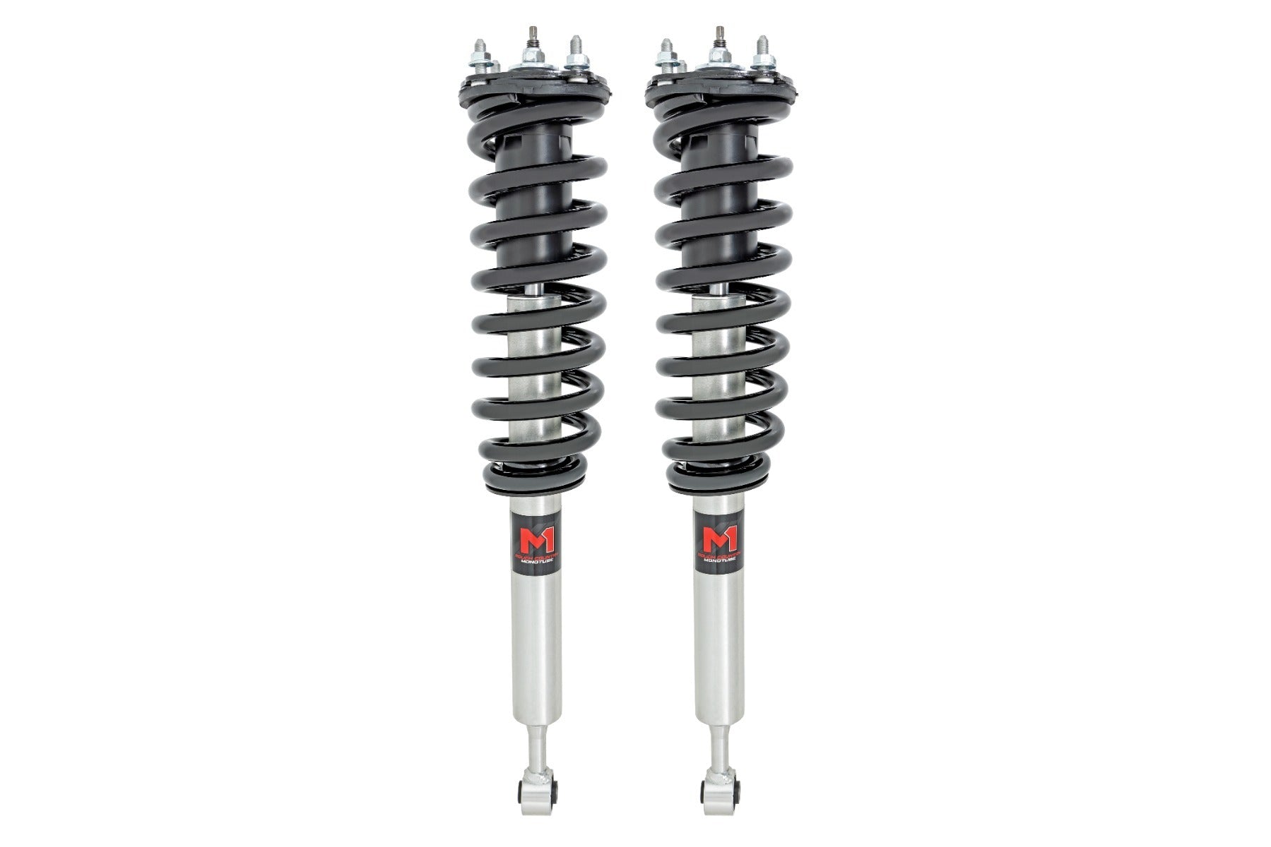 Improved Stance, Balance, and Handling. If you want to improve your vehicle's on-road performance and off-road capabilities, Rough Country's M1 Loaded Strut Kits are the way to go. Our M1 Loaded Struts help stabilize your vehicle's movements, enhancing control when you turn, brake, accelerate or ride over uneven road surfaces. As an adjustable ride height strut, these M1's keep your suspension from overextending, providing a more consistent ride. Made for rugged off-road performance, our M1 monotube struts have a 46mm digressive piston for a more stable ride, preserving the smooth ride quality you need.Quality Construction. Rough Country's M1 Loaded Struts have been engineered to give you the most reliable performance, increased driving comfort, and all-around performance for your vehicle. Made from 2" seamless extruded tubing and feature durable vulcanized natural rubber bushings. They're also zinc plated for resistance against the elements. Plus, they're adjustable in height. Utilizing multiple grooves in the strut body the spring perch can be raised or lowered. So whether you're looking to add a little extra clearance for off-roading or just want your ride to sit a little higher, our M1 Monotube Loaded Struts are the perfect solution.Installation and Warranty. This bolt-on installation requires just basic tools and about 2-3 hours to complete. Our Strut Kit is backed with a limited lifetime replacement warranty towards manufacturer defects. As such, the product is protected from structural and workmanship damage after the date of purchase. With our industry-leading warranty, give yourself peace of mind when using Rough Country's products!