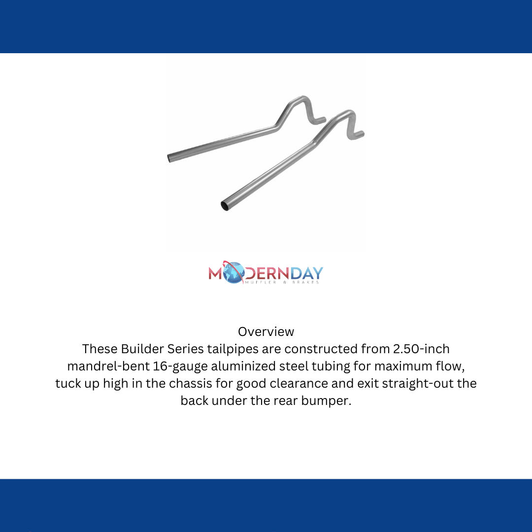 These Builder Series tailpipes are constructed from 2.50-inch mandrel-bent 16-gauge aluminized steel tubing for maximum flow, tuck up high in the chassis for good clearance and exit straight-out the back under the rear bumper. Designed to be used with Sid