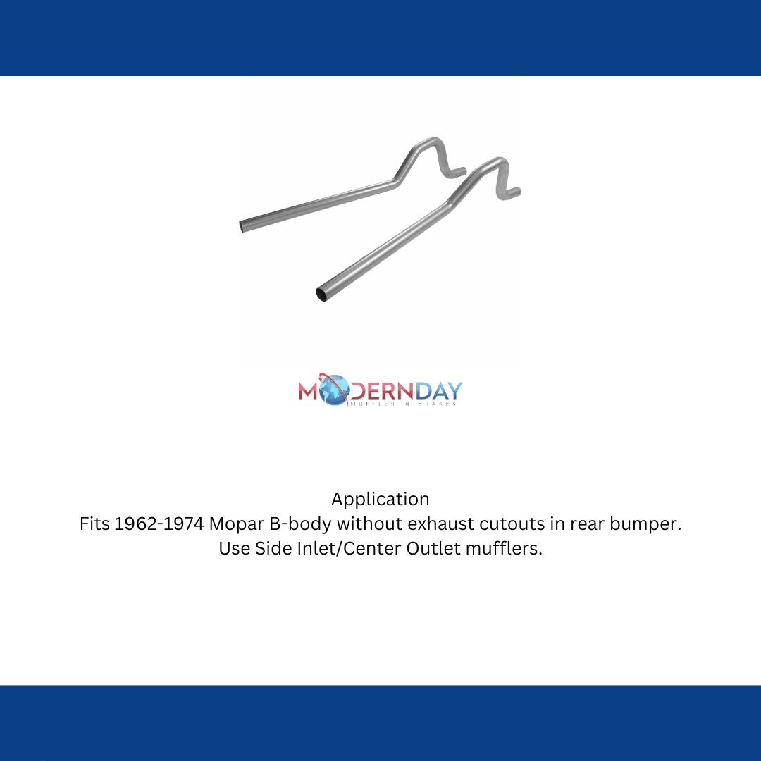 - Fits 1962-1974 Mopar B-body without exhaust cutouts in rear bumper. Use Side Inlet/Center Outlet mufflers.