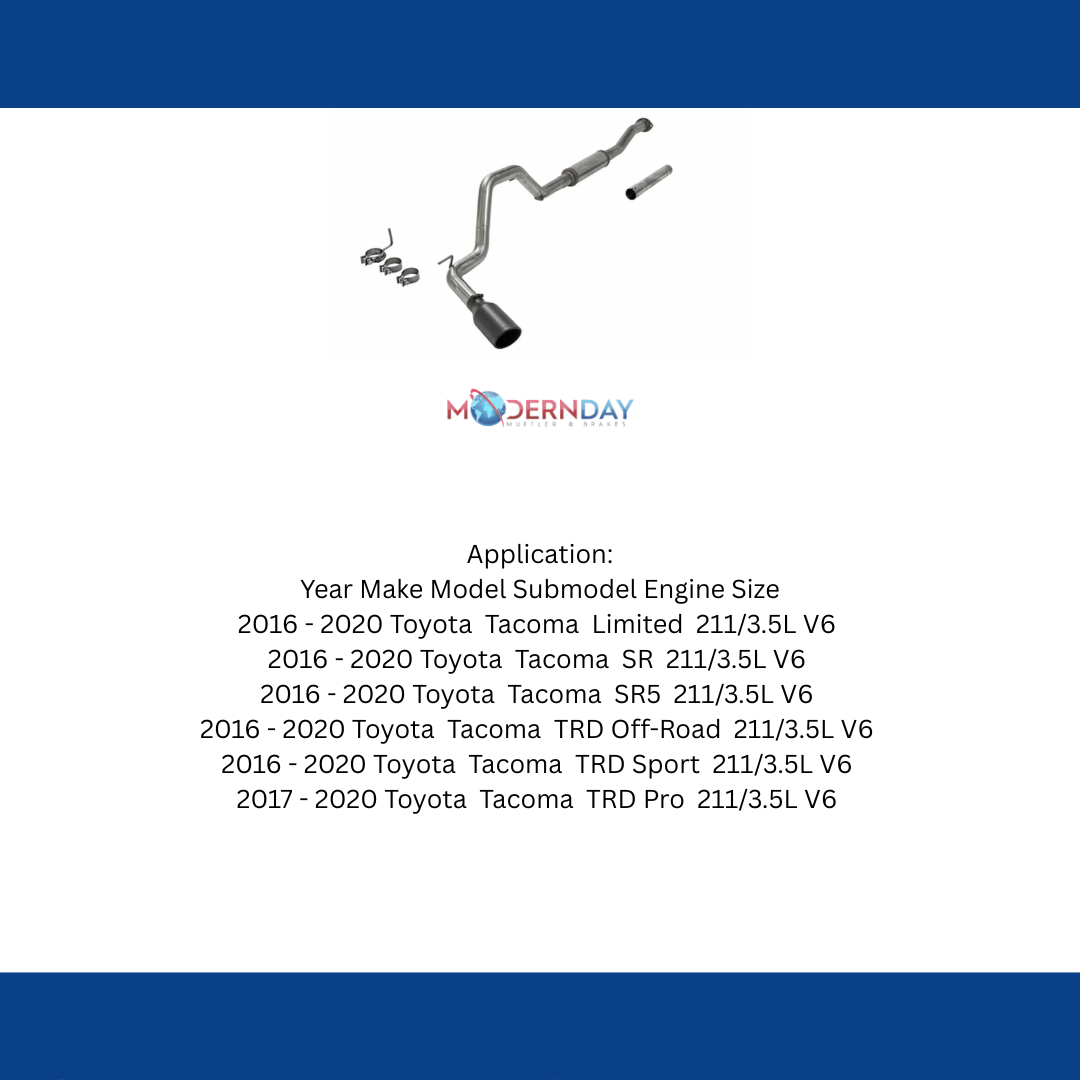 The new Flowmaster® FlowFX® cat-back exhaust system for the 2016-2020 Toyota Tacoma with the 3.5L engine is manufactured using durable 409 stainless steel throughout and features 2.50-inch mandrel bent pipes for better exhaust gas flow, and a FlowFX "straight-through" muffler for a great moderate sound level and maximum performance. The system is finished off with a 3.50-inch diameter black ceramic-coated 304S stainless steel tip, giving your Tacoma a custom look that goes hand in hand with that deep performance FlowFX sound. The system uses all the existing factory hanger locations and includes installation instructions and all necessary hardware for an easy installation that you can do at home. Backed by Flowmaster's lifetime Limited Warranty.