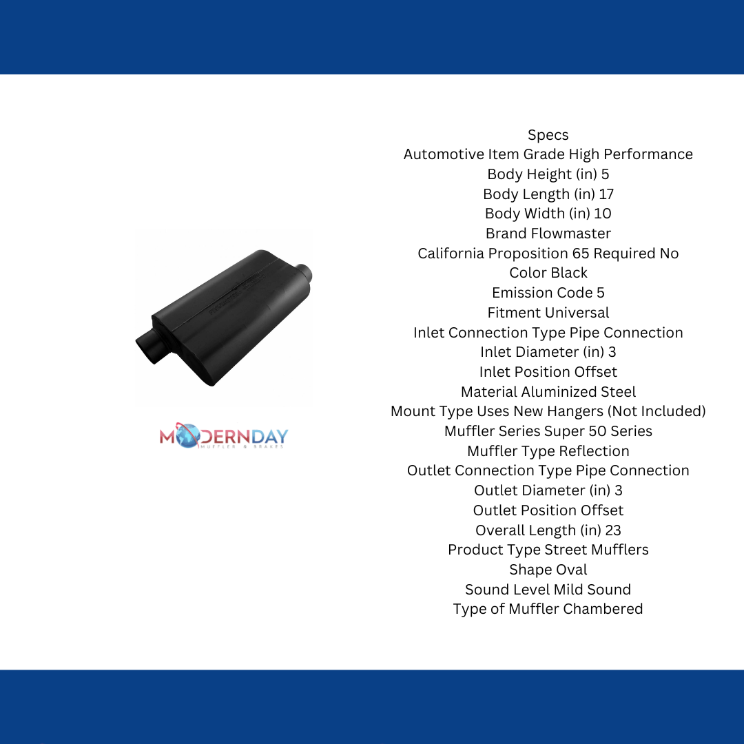 The Super 50 series muffler is a larger version of Flowmaster's 50 series Delta Flow muffler. Originally designed for trucks and SUV's, it is also well suited to muscle car and high performance applications. In addition, the larger case size significantly