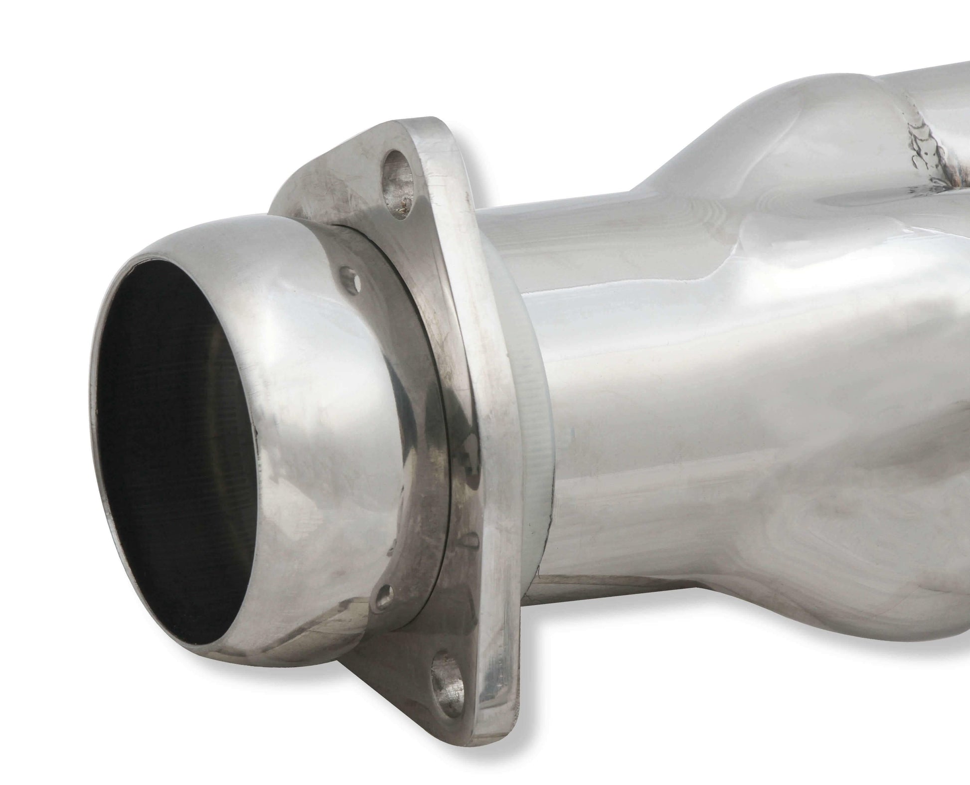 - 1-1/2” mandrel bent primary tubes and 2-1/2” collectors with merge spears for increased exhaust velocity