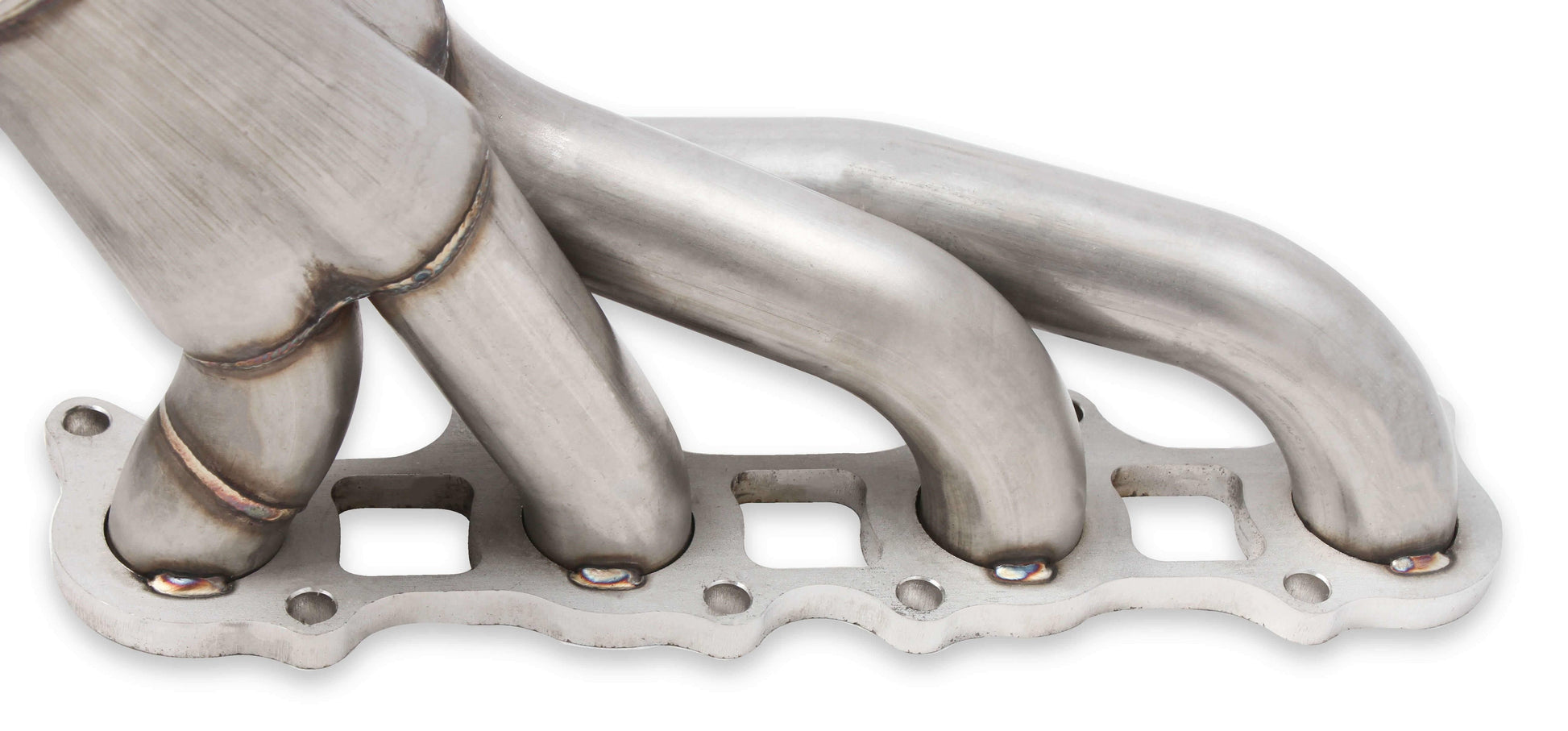 - 1-5/8” mandrel bent primary tubes and 2-1/2” collectors with merge spears for increased exhaust velocity