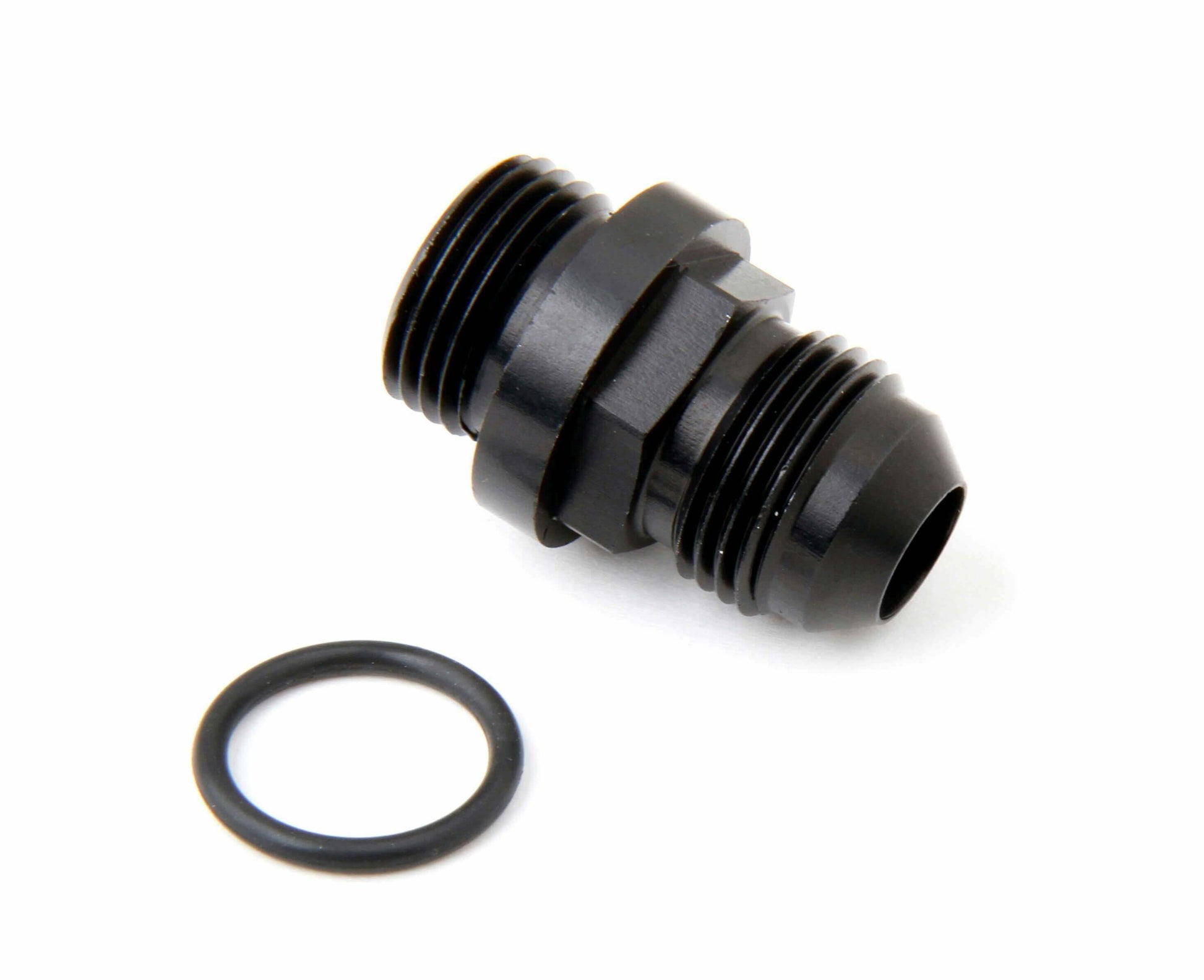 Holleys fuel inlet fittings are precisely machined from 2024 aluminum and anodized black for good looks and corrosion protection. Short -6AN male fuel inlet fitting (black) with -8AN o-ring threads for 4150 Ultra XP fuel bowls.