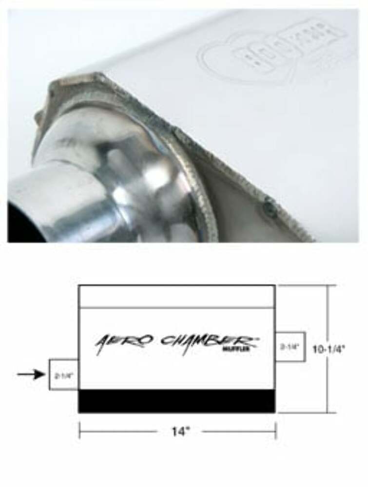 The raw aluminized steel Aero Chamber is designed to do much more than simply muffle exhaust noise. The Aero Chamber Muffler produces a deep throaty powerful sound that will not change with time. The Hooker Aero Chamber uses a unique step principal, similar to that which is currently popular in racing header design. The aerodynamically designed chambers flow 23% better and produce more horsepower and torque than the most popular high performance brand.