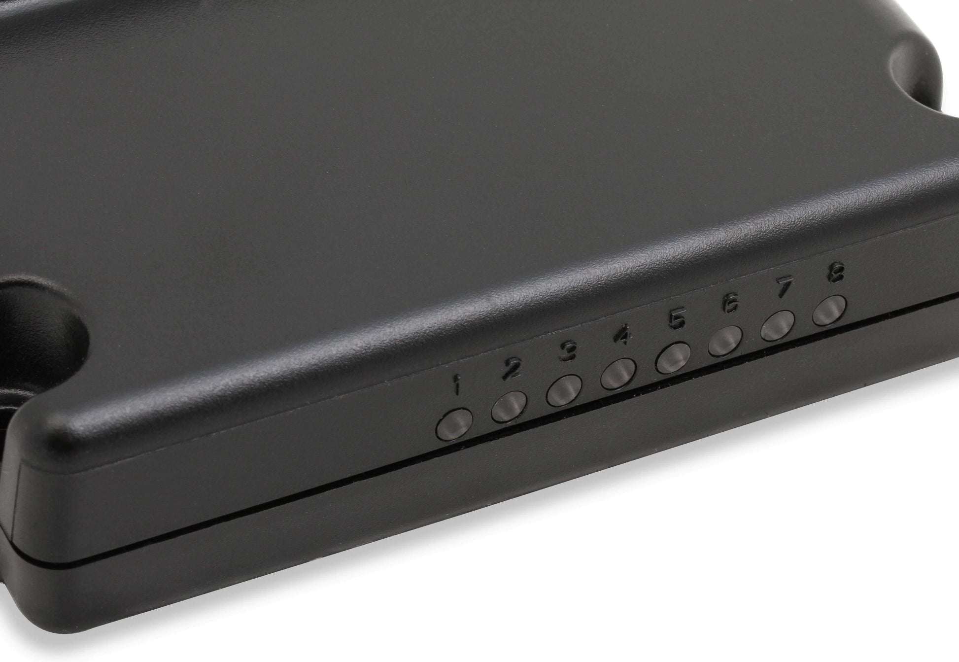 - 8 RGB LEDs indicate proper operation as well as log faults