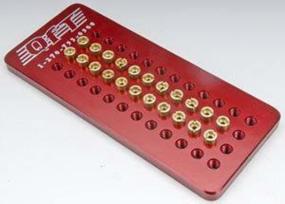 Jet Assortment Kit with billet plate. Comes with (4) each of every jet number from 100-110 and red anodized QFT Billet plate.