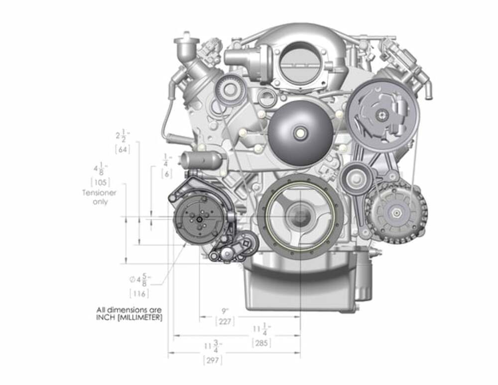 A Fitment and Required Components Guide helps you locate and source components and provides other notes and helpful hints. Three easy steps will get you going. Step one is to determine your belt alignment based on your crank pulley position on the engine you have. Step two is to choose the Holley accessory drive brackets that you need (A/C, Alt & P/S or both). Step three is to see if and installation kit is for required for your crank pulley position. The Low LS A/C bracket and complete A/C kits fit the standard, middle or long spacing.