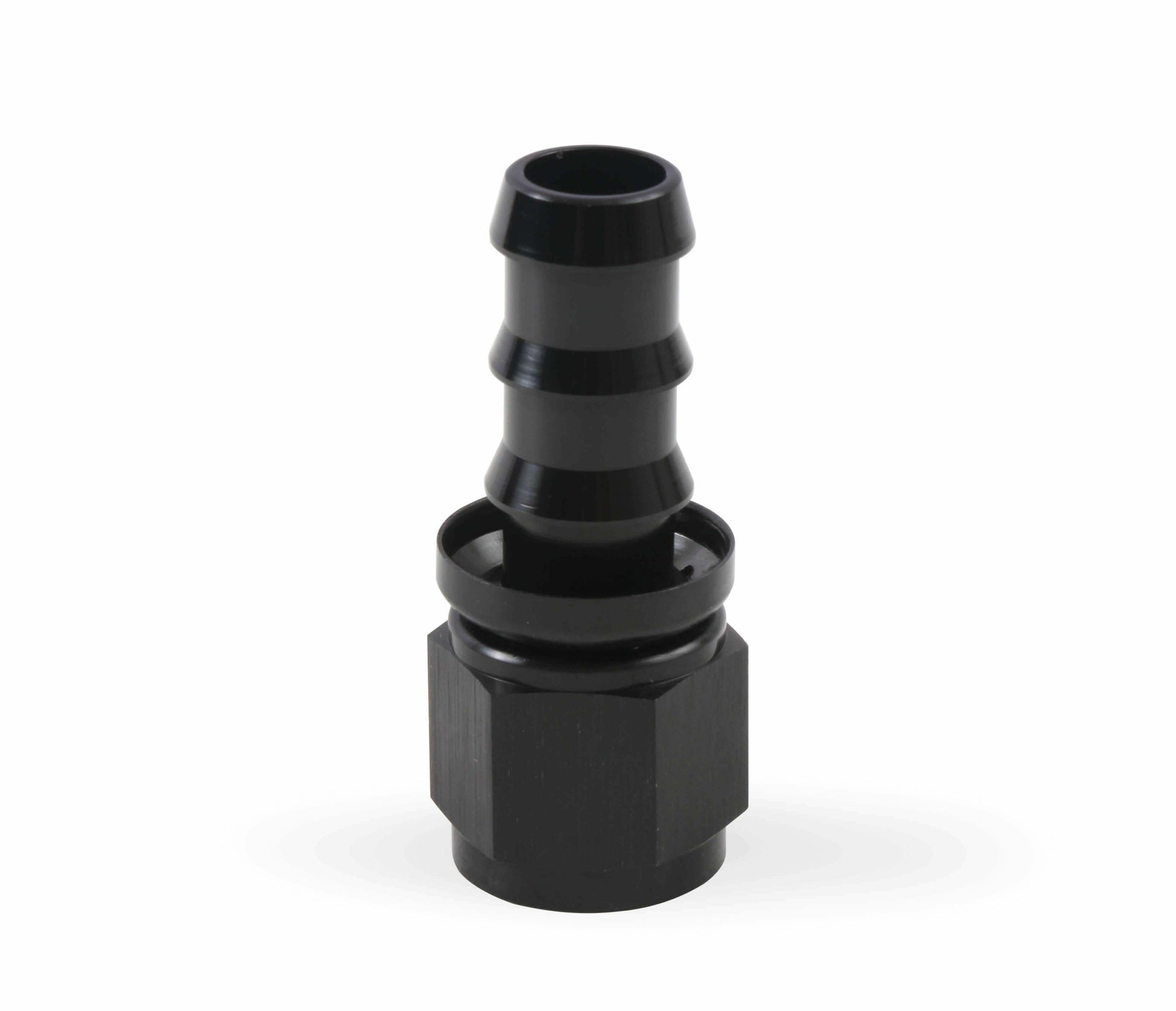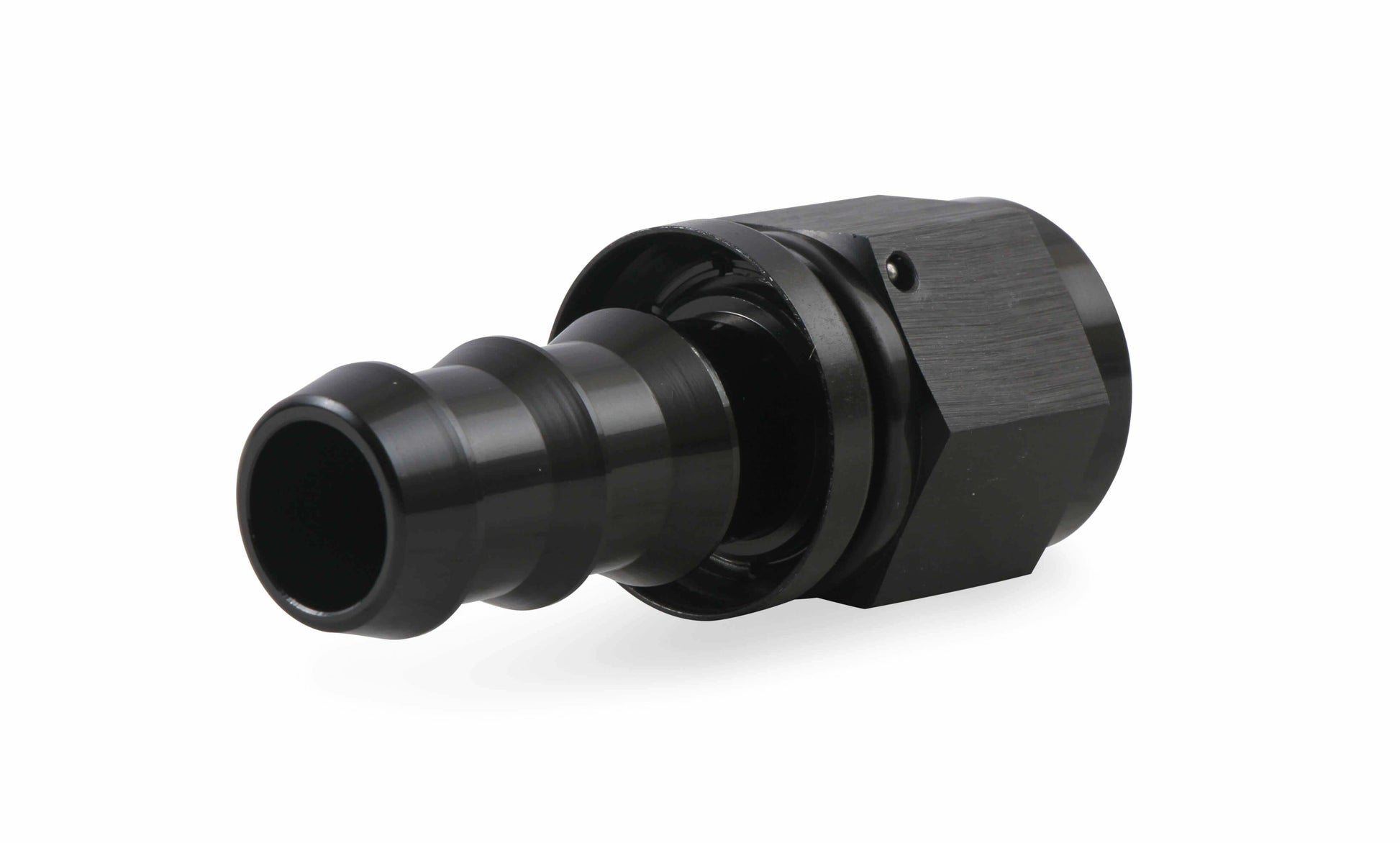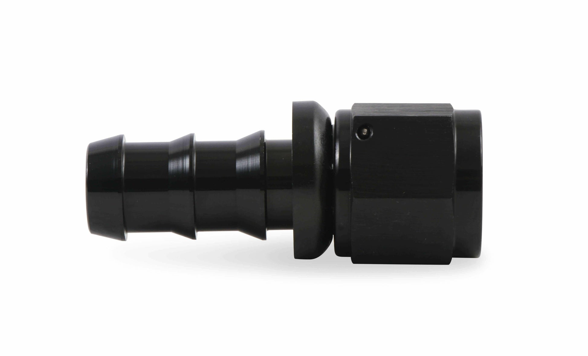 This Mr. Gasket Hose End is economically priced, manufactured from 6061 aluminum and comes in a black anodized satin finish. The satin finish with no logo looks great even when mixed with other brands of AN plumbing. Designed to use push-in AN hoses and the swivel end allows for adjustment after installation.