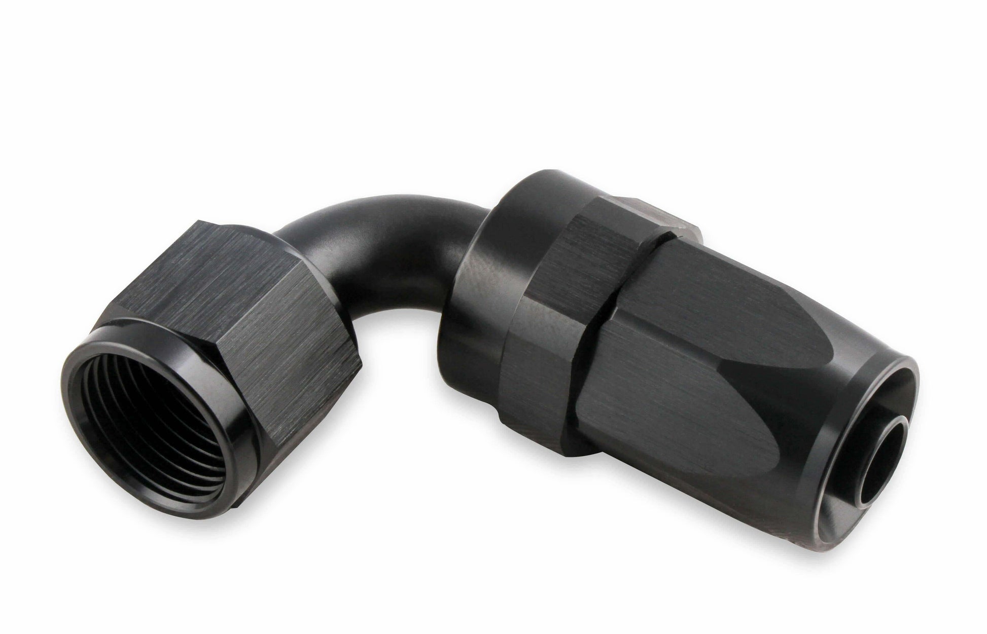 Mr. Gasket -8 AN 90 Degree Swivel Hose End - Black - 229008-BL