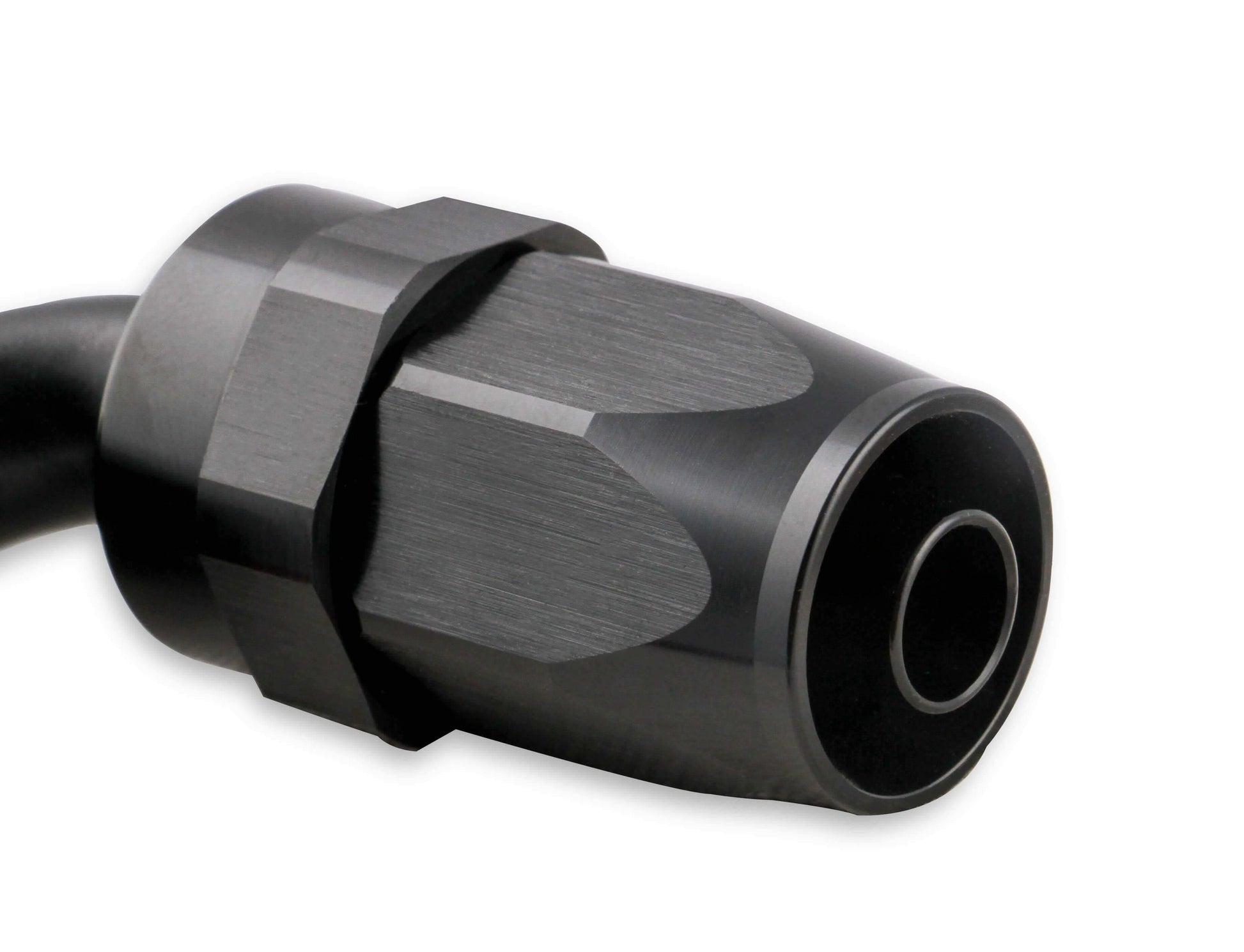 This Mr. Gasket Swivel Hose End is economically priced, manufactured from 6061 aluminum and comes in a black anodized satin finish. The satin finish with no logo looks great even when mixed with other brands of AN plumbing. Designed to use push-in AN hoses and the swivel end allows for adjustment after installation.
