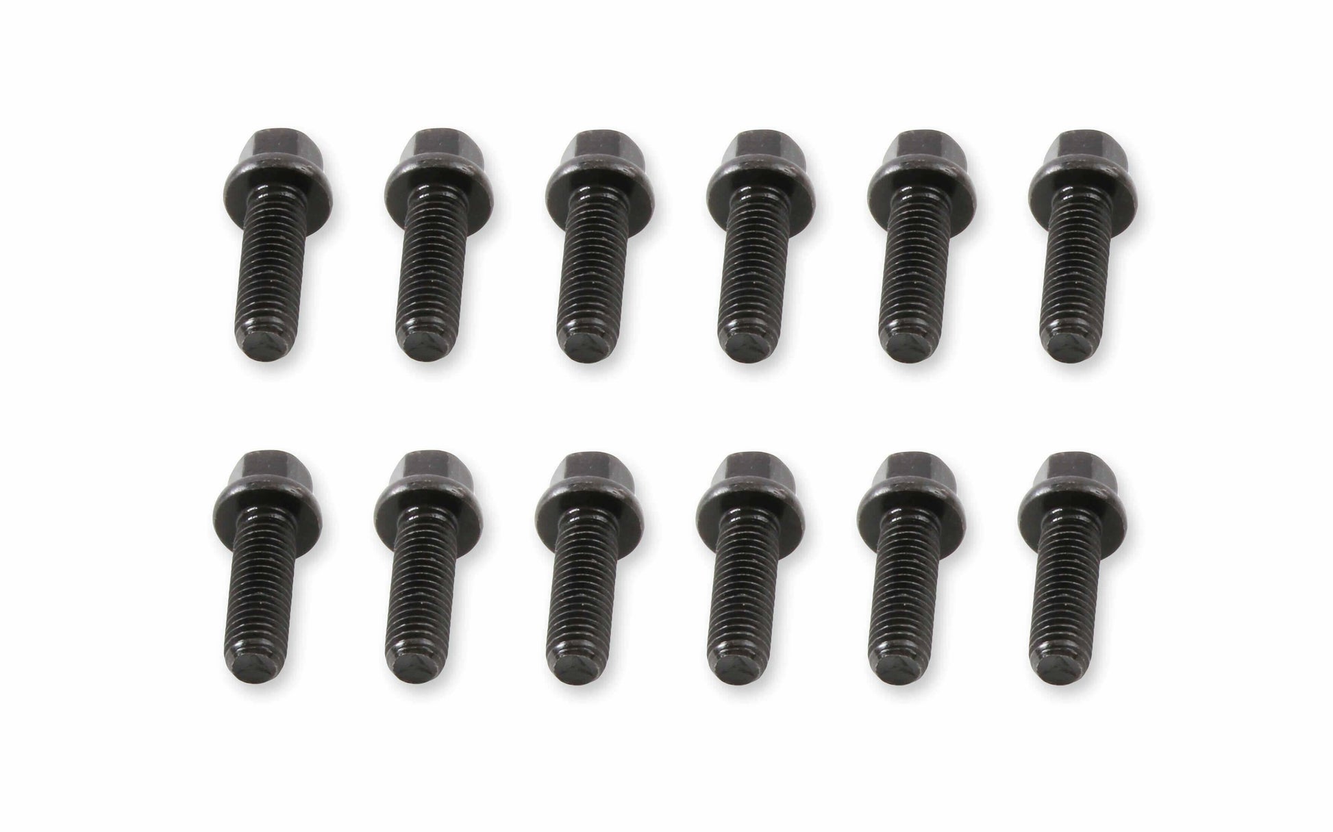 Black oxide finished carbon steel header bolts have a compact hex head and the flange is ideal for use where space is minimal - your typical header flange. Includes twelve (12) M8 - 1.25 x 25mm header bolts.