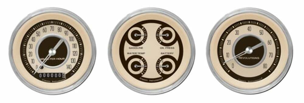 Nostalgia VT Series 3 3/8" Speedo, Tach, & Quad with Stainless High Step Bezel Curved Glass Lens