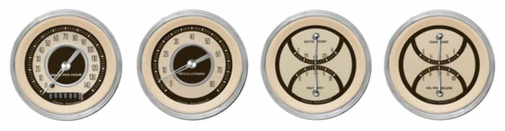 Nostalgia VT Series 3 3/8" Speedo, Tach, & 2 Duals with Stainless High Step Bezel Curved Glass Lens