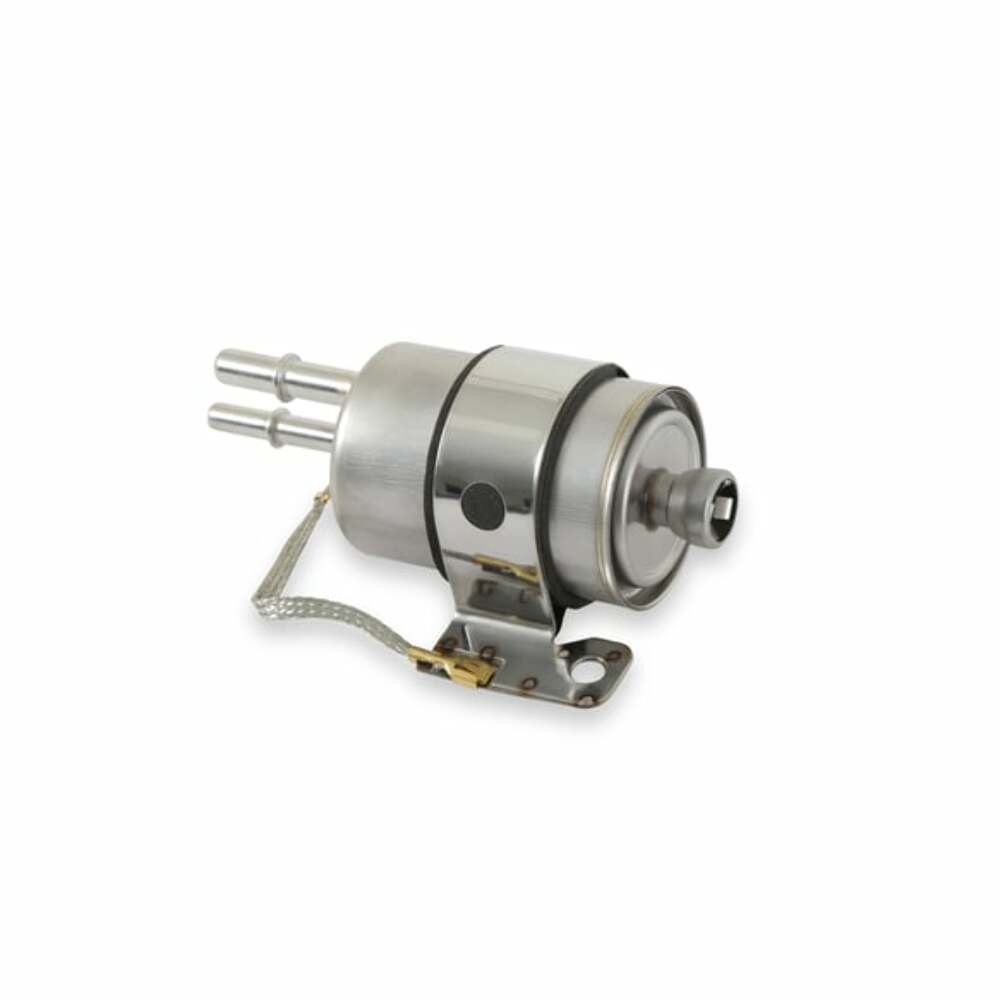 Holley EFI fuel filters with built-in regulator provide a simple and clean means to fueling your LS swap. Available with OEM-style or -6AN connections, they feature an internal regulator set at 58 psi, along with an integrated 5 nominal micron rated filter. The bypass design allows you to run one inlet with one outlet to the engine, and a return outlet back to the tank. Holley EFI fuel filter regulators are ideal when performing a LS engine swap or any other fuel injection swap that is designed to run at 58 psi of static pressure.