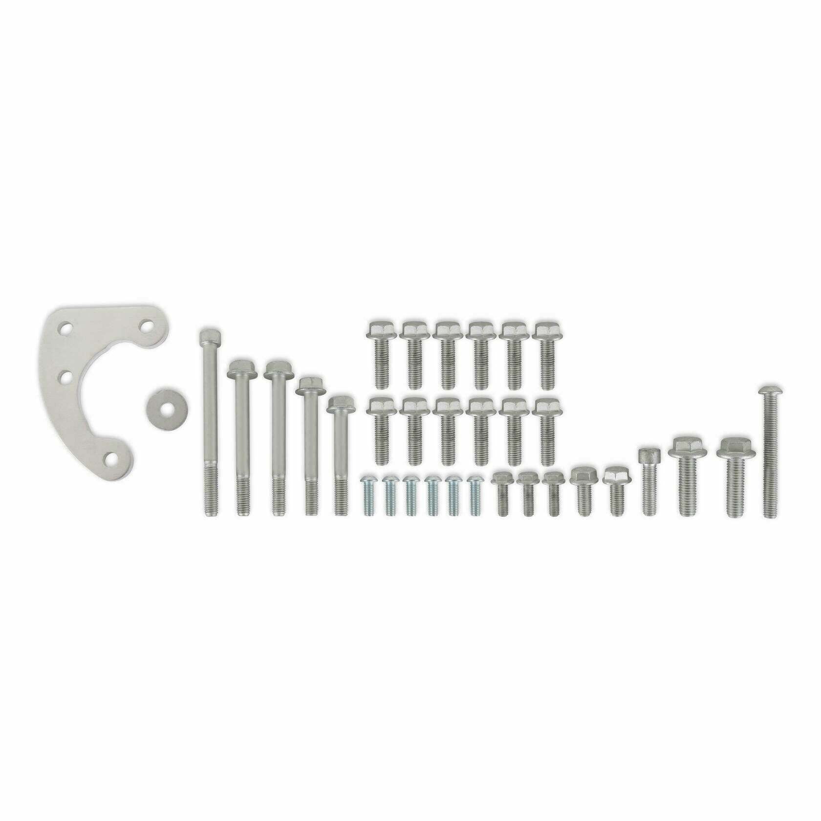 The accessory drive components in this system can be configured in several different ways. For example, there are alternator options available for different performance and electrical demands. Also, deleting the A/C and/or P/S are options if configured as a custom modular setup. The "base kits" supply all but the components with options. If you purchased a "Holley complete kit," all these options are already chosen for the most common, cost-effective combination.