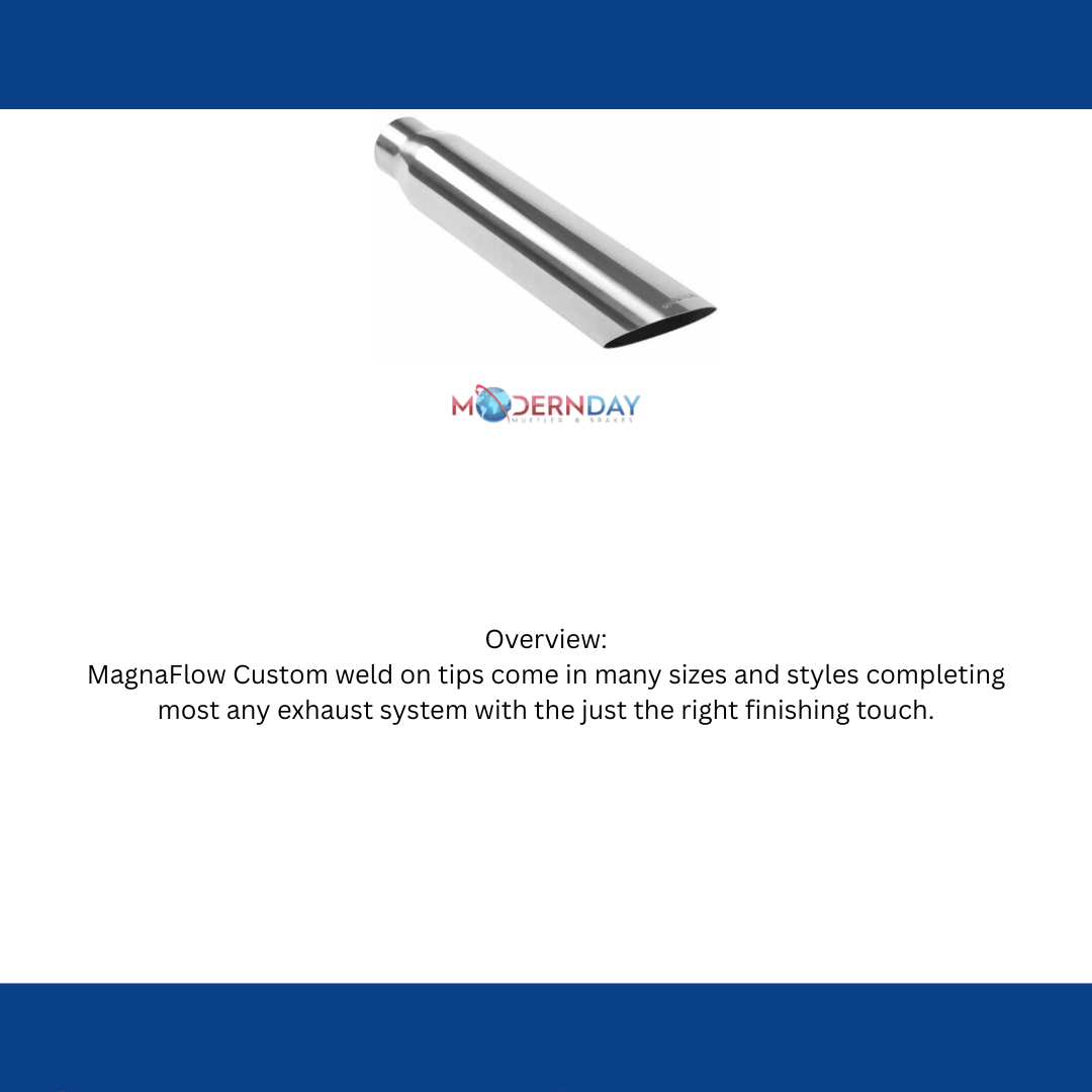 MagnaFlow Custom weld on tips come in many sizes and styles completing most any exhaust system with the just the right finishing touch.